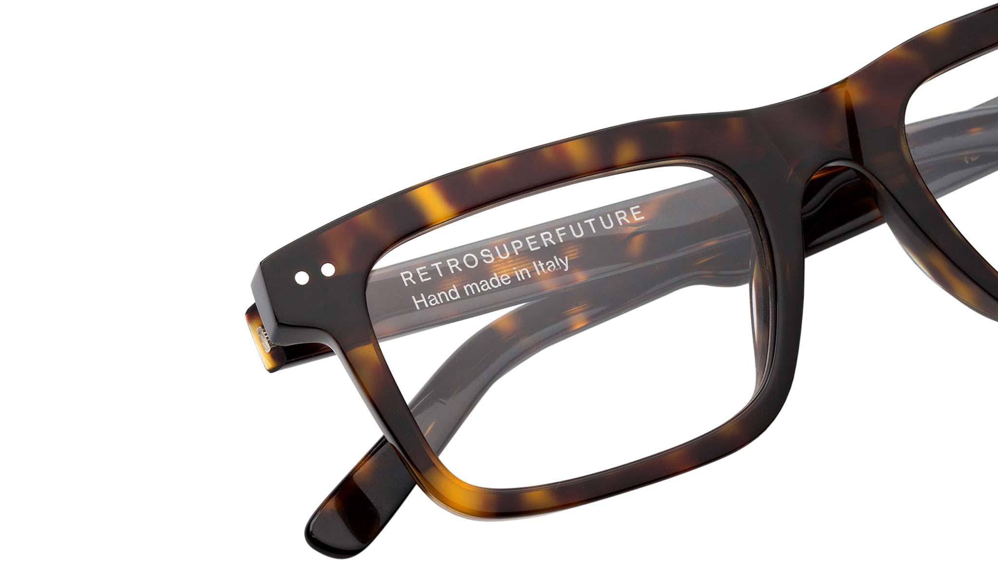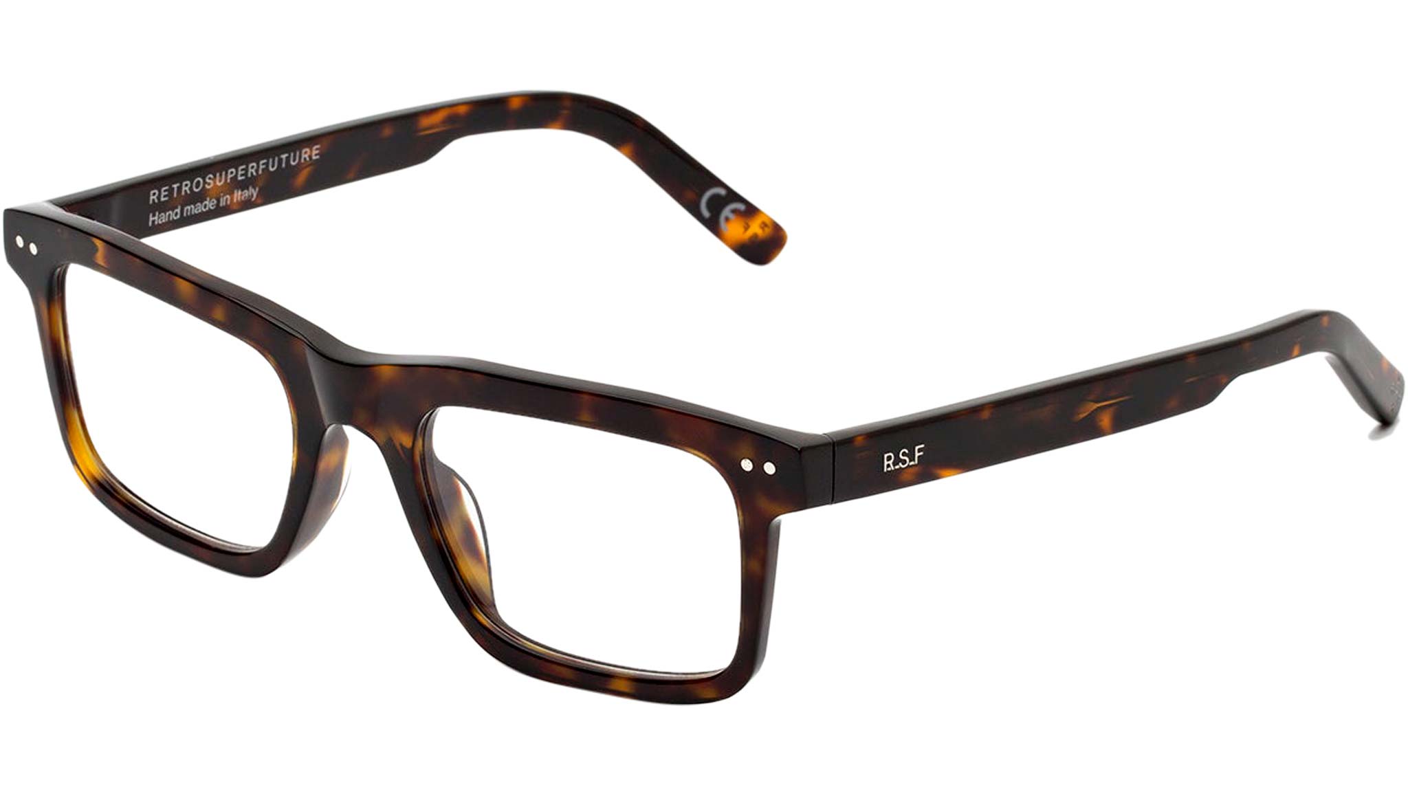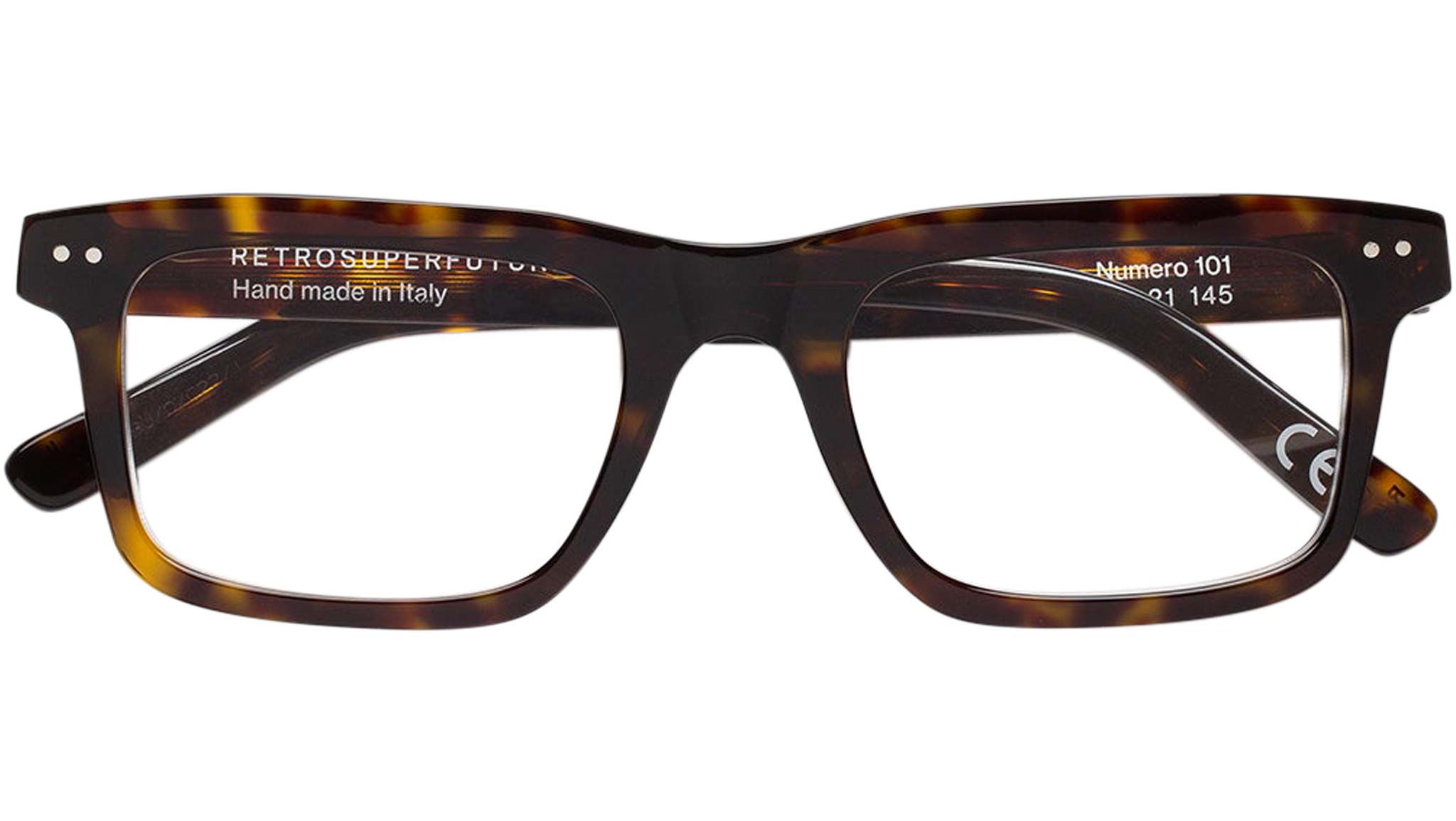 Numero 101 by Retrosuperfuture is an essential angular silhouette that remixes classic geometric frames from the 1950s in a contemporary language. With its thick nose-bridge and marked brow-line, this model captures the sharp, hard-edged aesthetics of mid-century design, adapting it for more fluid contemporary use. Numero 101 is unobtrusive and lightweight for an all-day-everyday use, while underlining a marked stylistic vision. This version comes in a vibrant 3627 Havana acetate. Sizes: R Lens Width: 52 mm. Frame Front: Frame Side: 145 mm. Product Code Size R: IBU