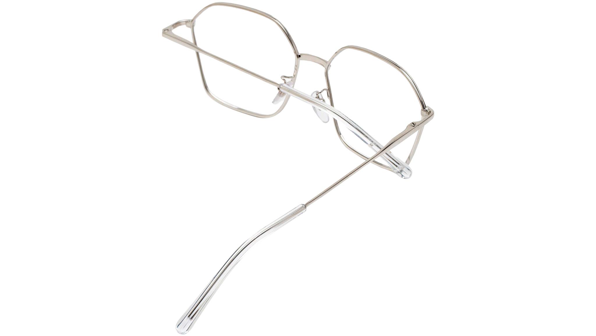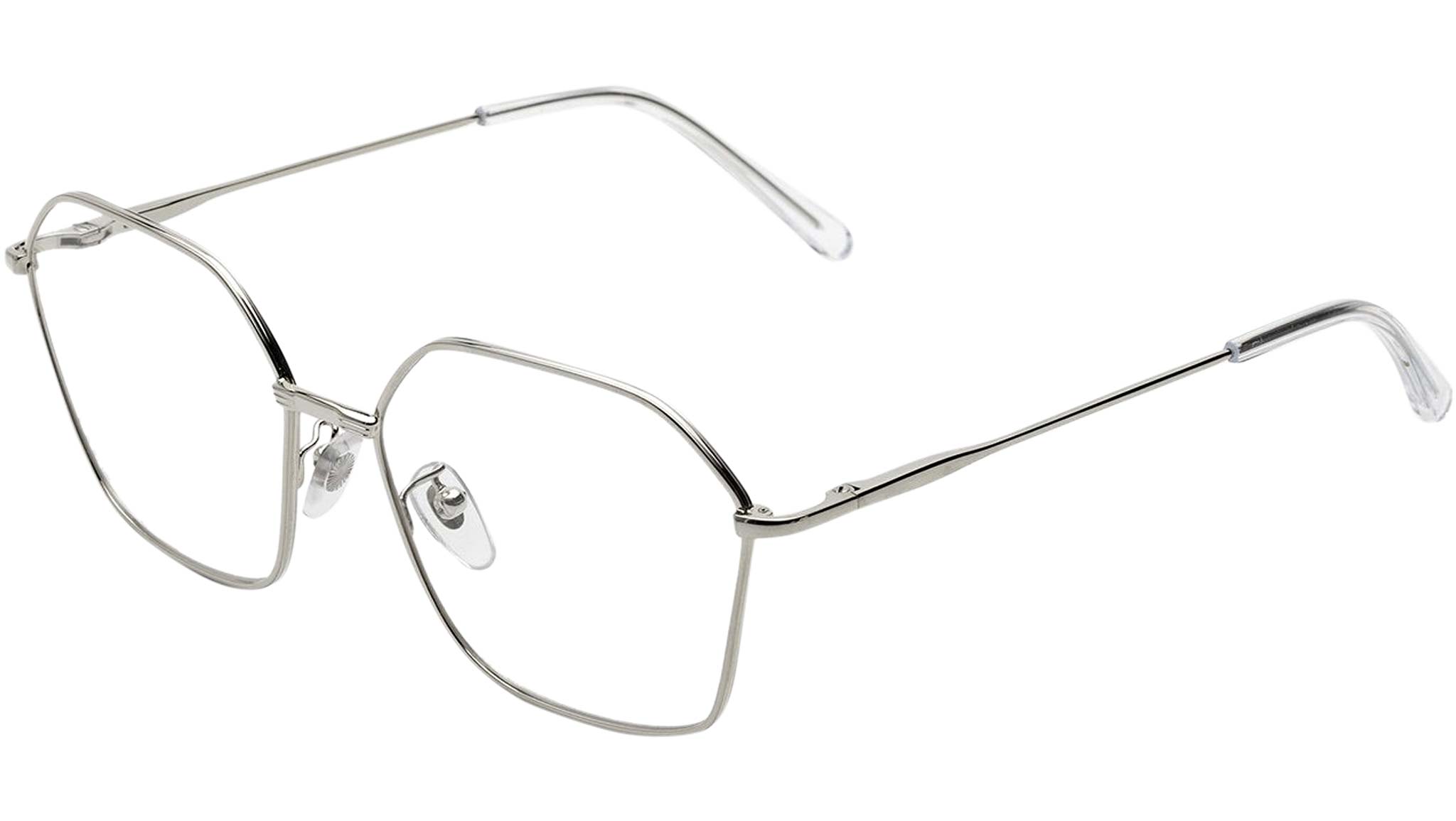 Numero 91 by Retrosuperfuture is a lightweight metal frame characterized by a bold oversized design. The model features wide hexagonal lenses, encased within sleek metal rims that counterbalance its wide shape. Thicker nose-bridge and temples, as well as silicone nose-pads offer a strong and comfortable fit in daily use. This version comes in silver. Prescription lenses not included. Sizes: R Lens Width: 56 mm. Frame Front: 130,5 mm. Frame Side: 140 mm. Product Code Size R: A87