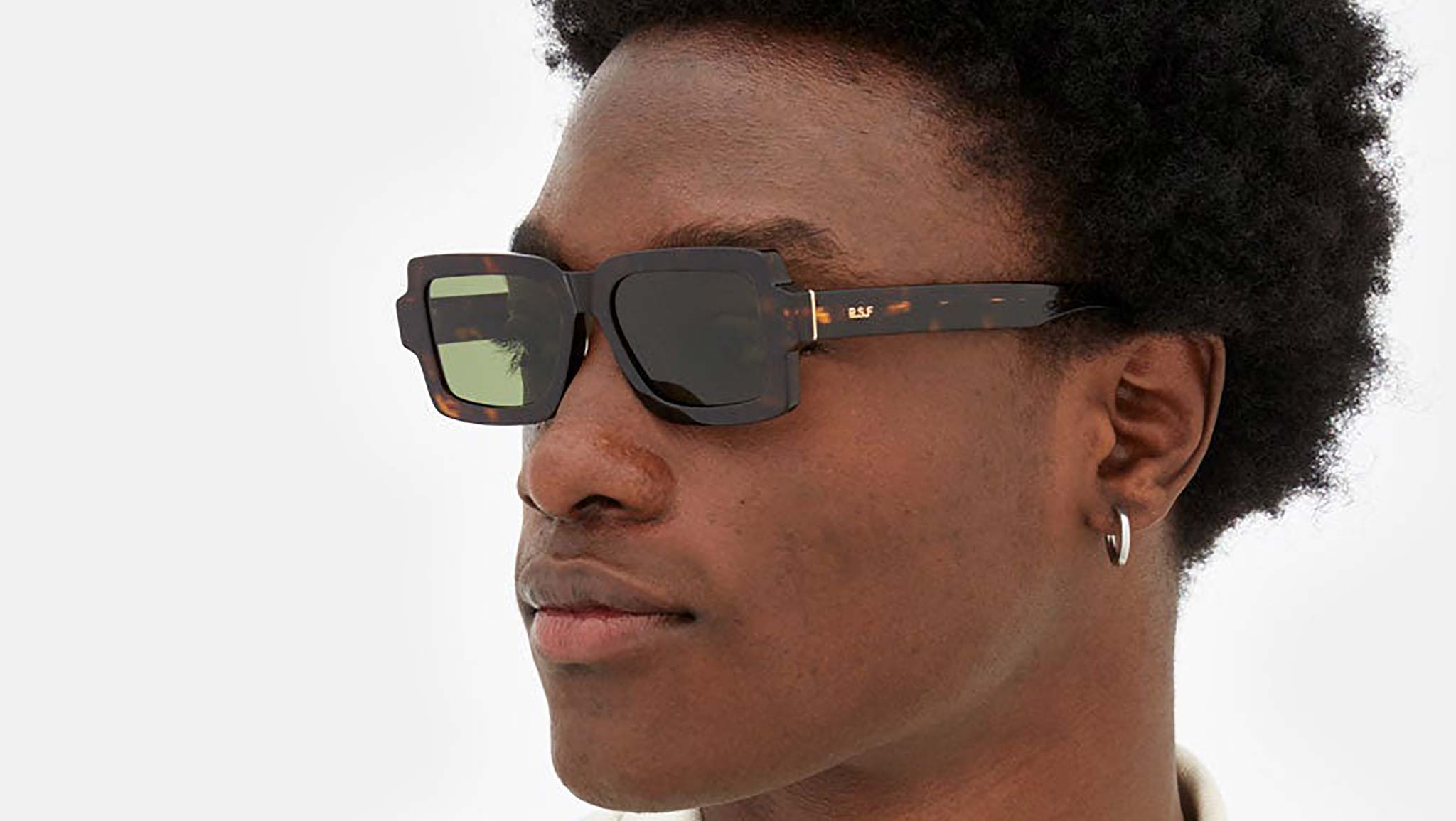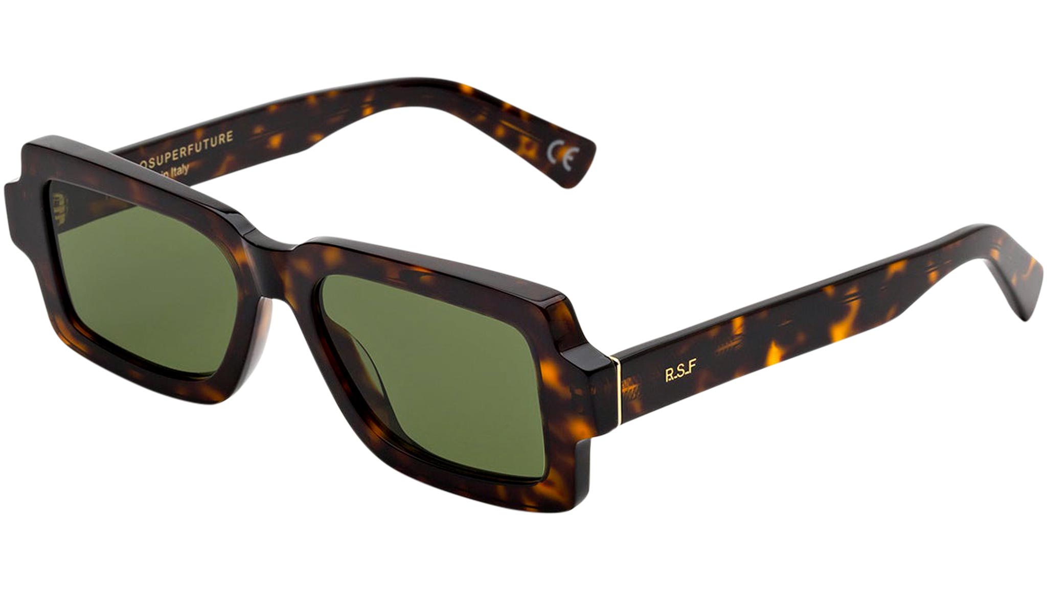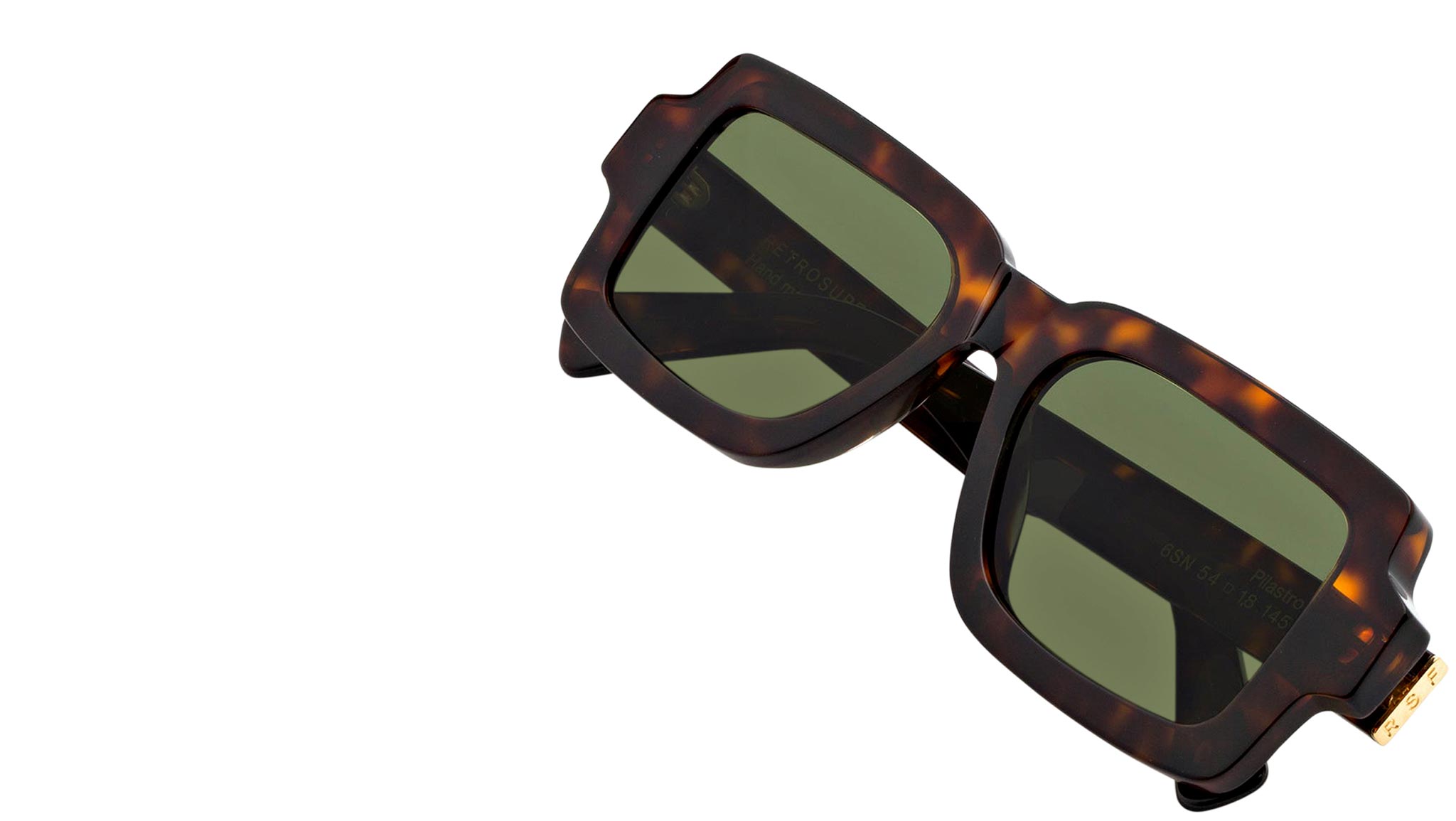 Pilastro is a sharp contemporary silhouette characterized by a unique geometric design. The model’s innovative shape features rectangular rims that stand out for their particularly wide and low-riding proportions. The thick acetate construction of the Pilastro is a crossover between 1970s exuberance and 2000s street-edge. Conceived as a unisex shape, this version of the Pilastro features a dark 3627 Havana acetate with bottle green lenses. Sizes: R Lens Width: 54 mm. Frame Front: Frame Side: 145 mm. Product Code Size R: 6SN