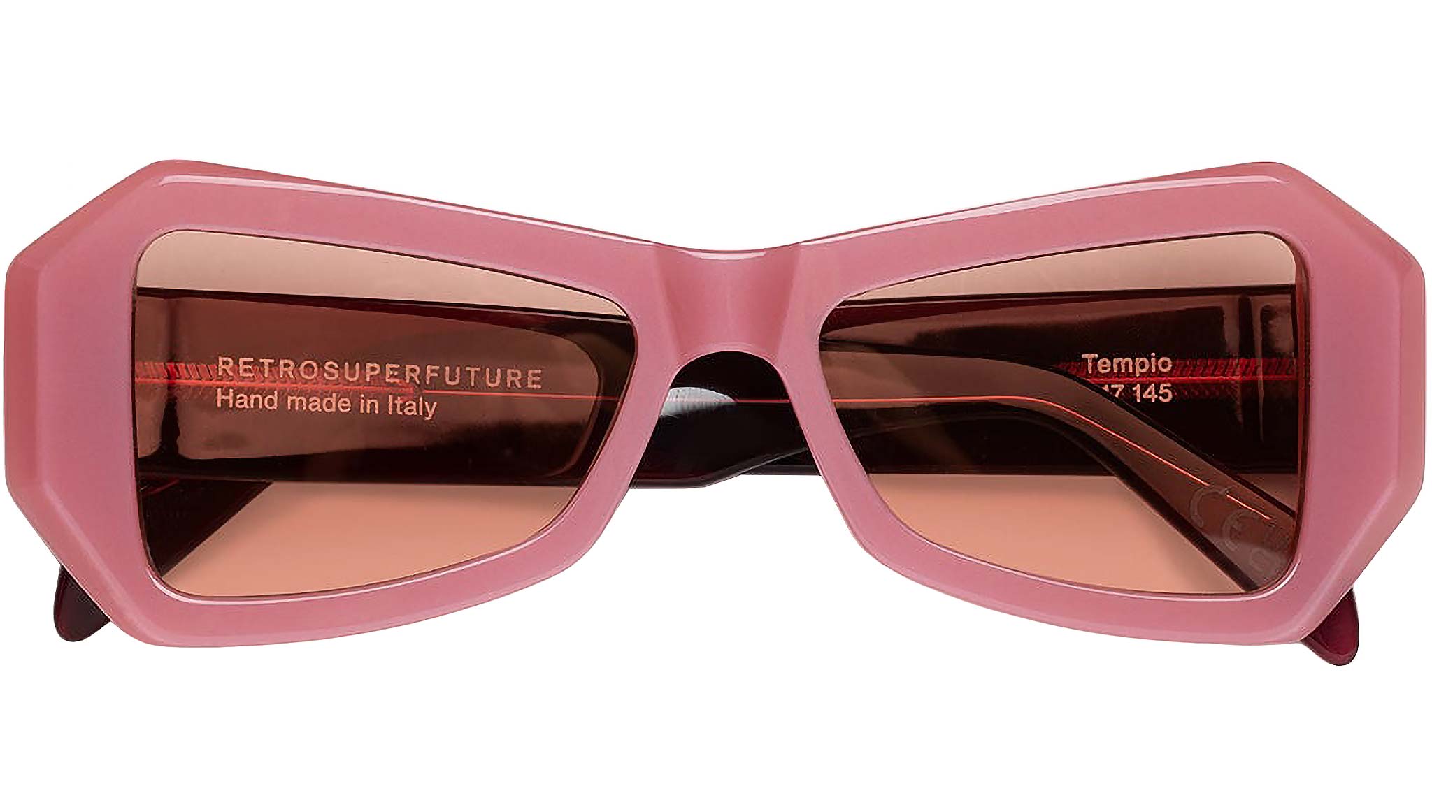 Known for their experimental approach to design, RSF have crafted a Tempio, a silhouette that is both fresh yet wearable. Templo blends street references with high-end fashion appeal. Characterised by sharp lines, the model features thick acetate rims that have been sculpted to form a V-shaped browline and oversized lenses. This futuristic-looking shape is a head-turning piece of eyewear. Tempio comes in with a candy-colored pink front, burgundy temples and pink tinted lens. Sizes: R Lens Width: 53 mm. Frame Front: Frame Side: 145 mm. Product Code Size R: 8BU