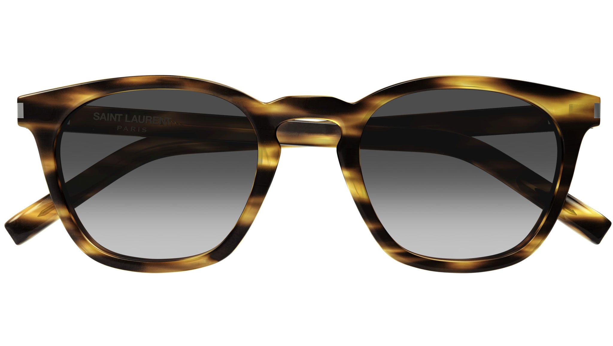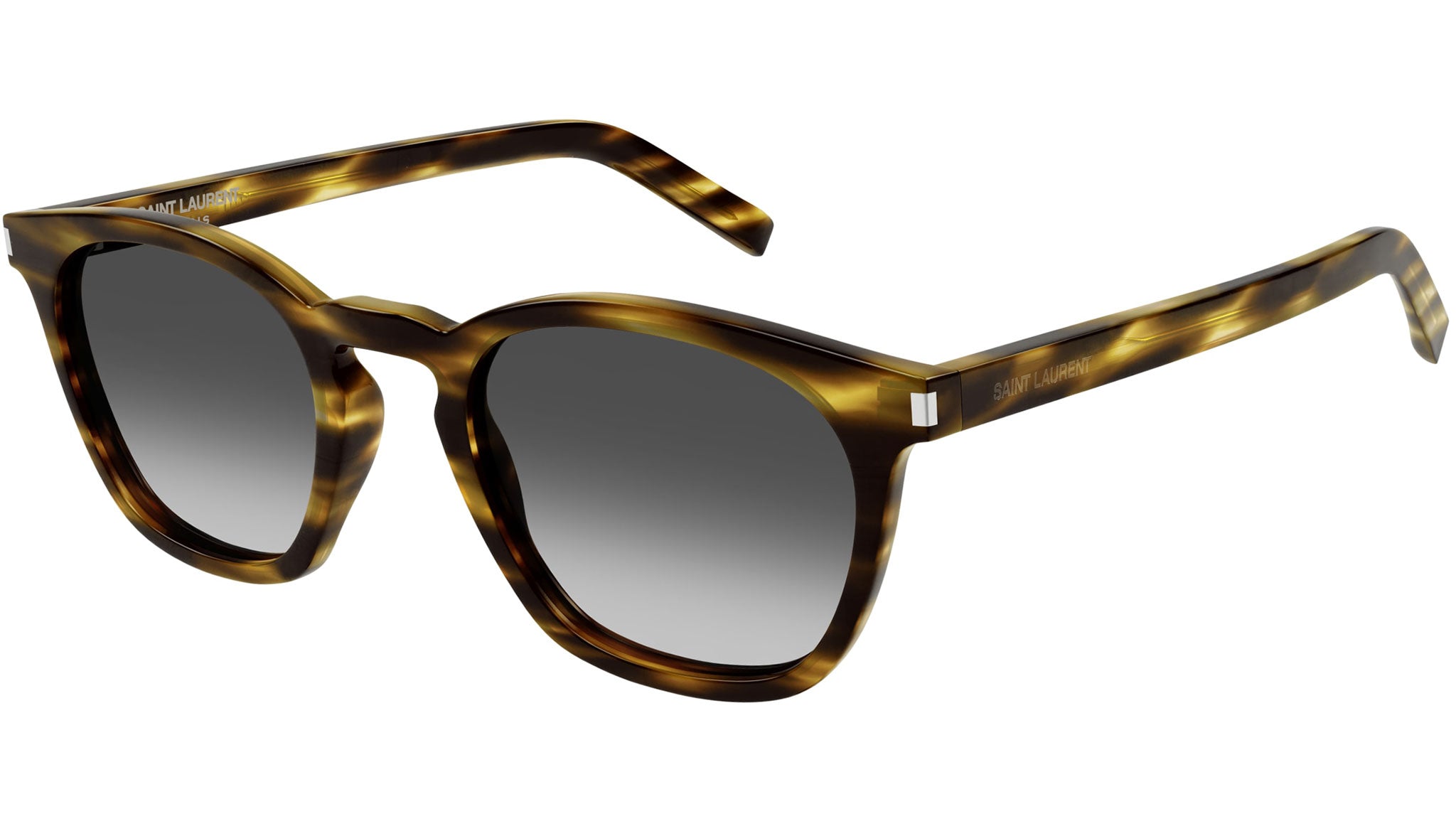 Occhiali da sole Saint Laurent modello SL 28 linea Classic codice colore 045 avana fiammato lucido in acetato forma rectangle con lenti color grigio sfumato.