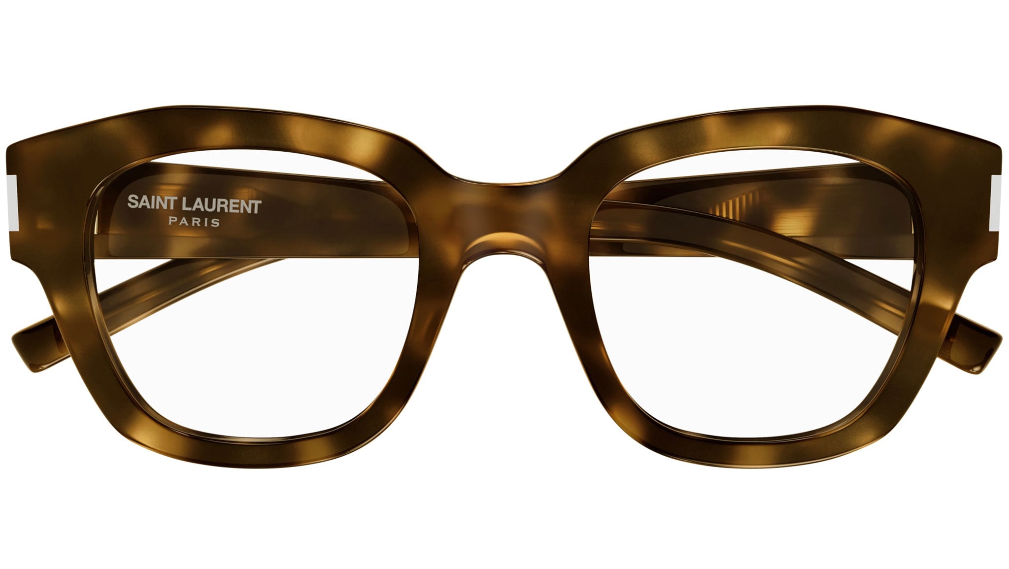 Occhiali da vista Saint Laurent modello SL 640 linea New Wave codice colore 003 avana medio lucido in acetato riciclato forma rectangle con aste color tartaruga.