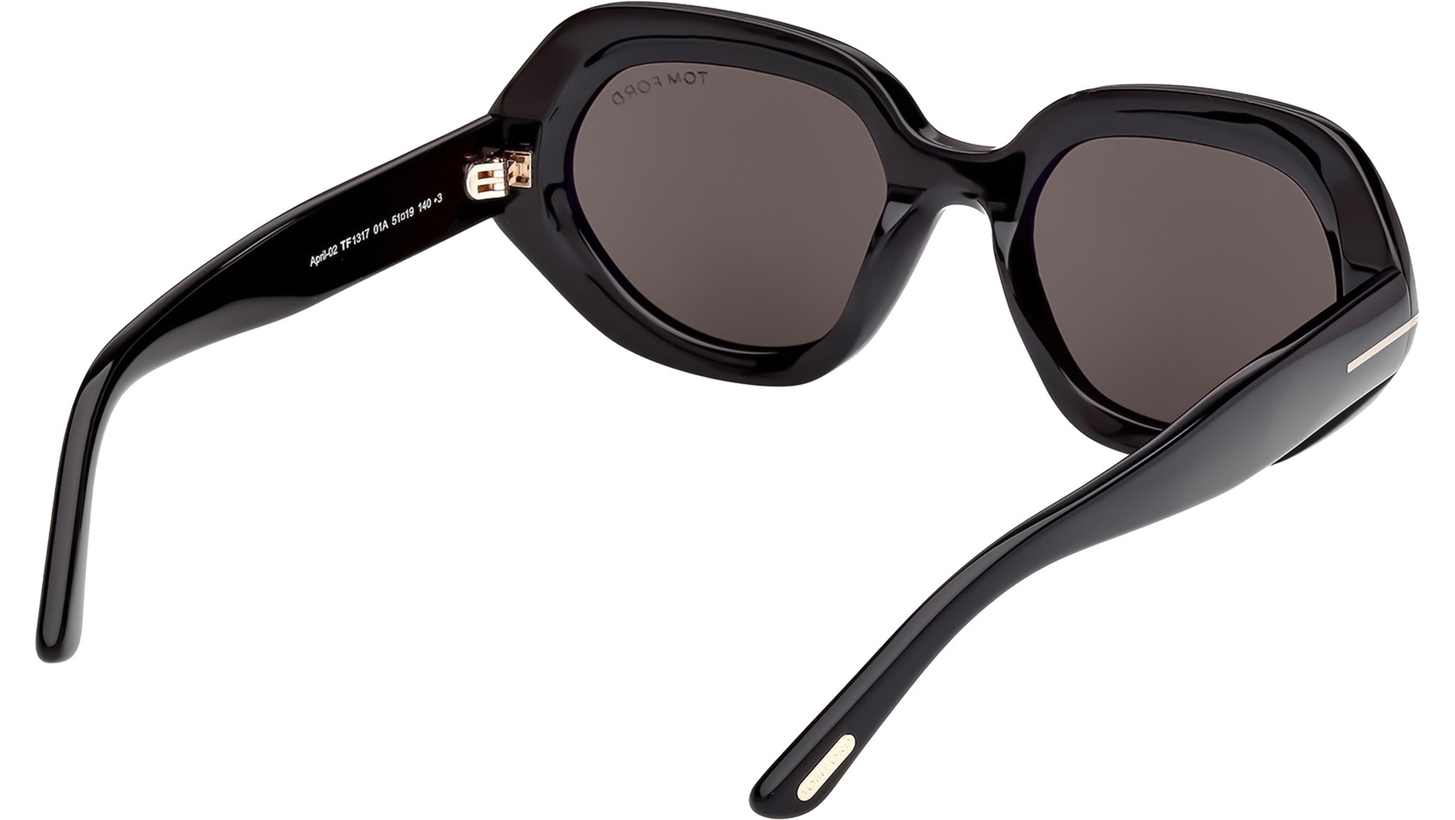 Occhiali da sole Tom Ford donna modello April-02 FT1317 con montatura geometrica full-rim in acetato nero lucido e lenti color grigio fumo. Codice Brand: 1317. Codice colore: 01A. Rivenditore autorizzato Tom Ford online. Gli occhiali vengono consegnati con custodia e accessori originali e sono coperti da garanzia standard di 12 mesi del produttore.