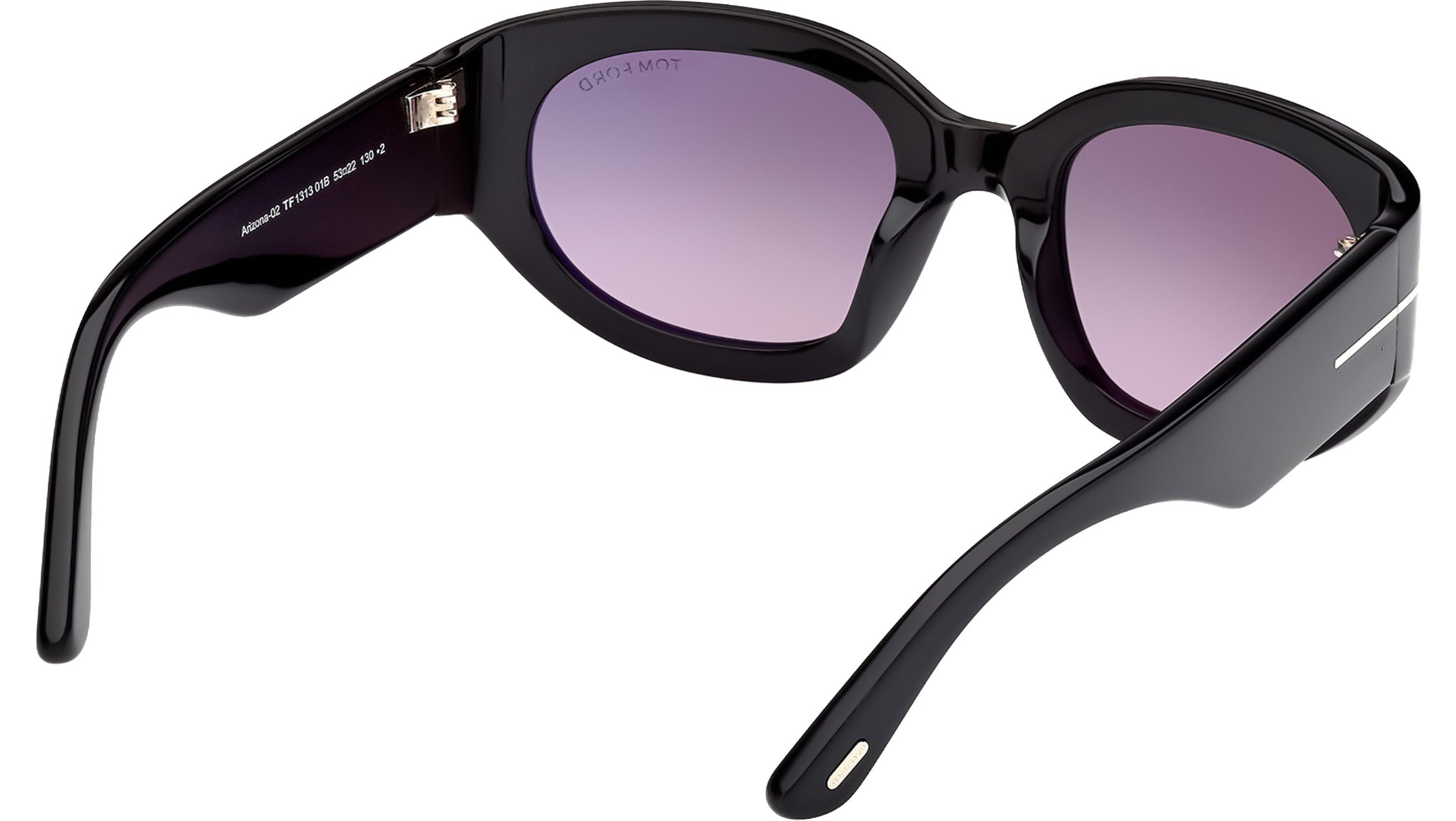 Occhiali da sole Tom Ford donna modello Arizona-02 FT1313 con montatura rettangolare full-rim in acetato nero lucido e lenti color grigio fumo sfumato. Codice Brand: 1313. Codice colore: 01B. Rivenditore autorizzato Tom Ford online. Gli occhiali vengono consegnati con custodia e accessori originali e sono coperti da garanzia standard di 12 mesi del produttore.