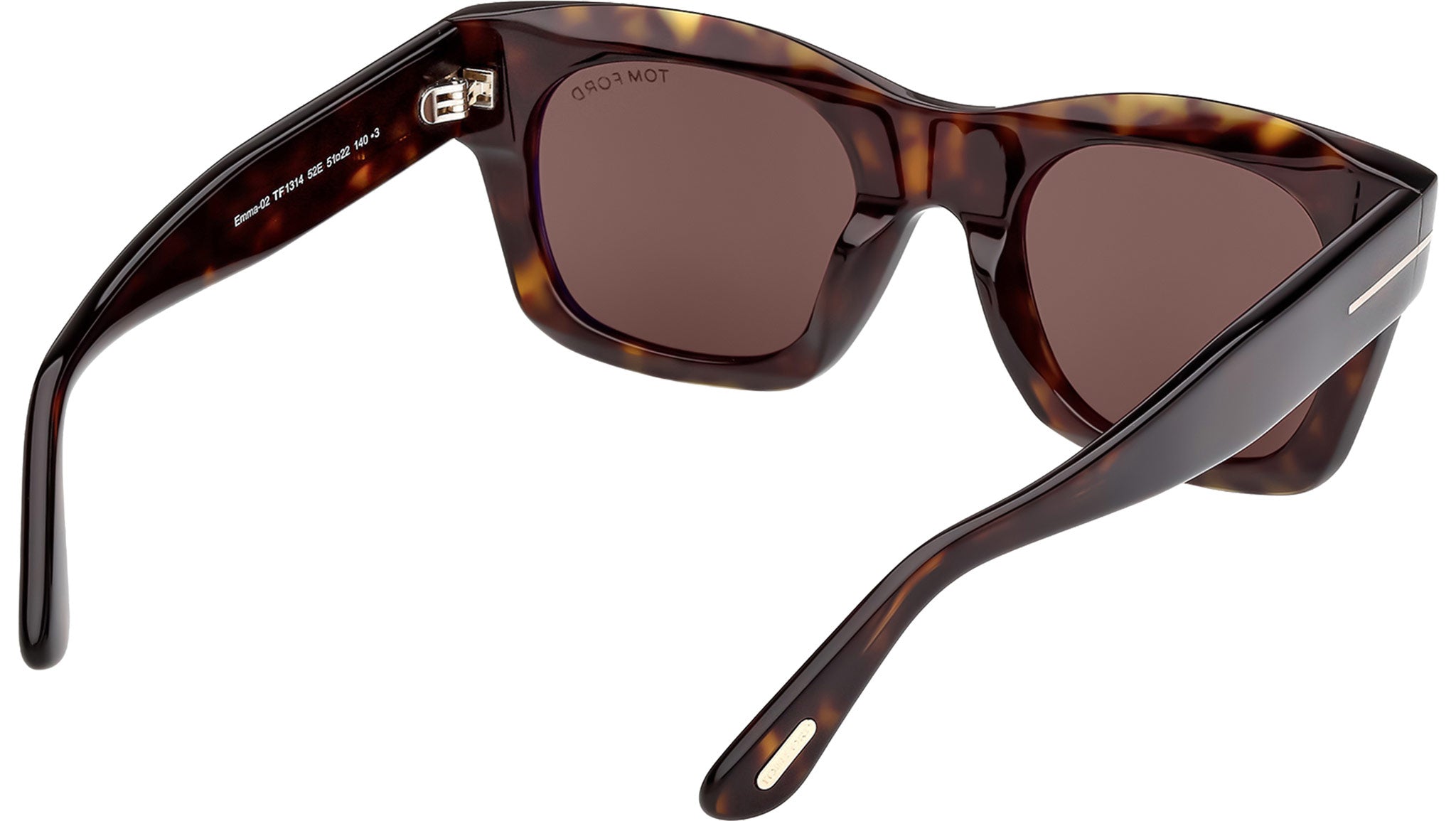 Occhiali da sole Tom Ford donna modello Emma-02 FT1314 con montatura squadrata full-rim in acetato avana scuro e lenti color marrone. Codice Brand: 1314. Codice colore: 52E. Rivenditore autorizzato Tom Ford online. Gli occhiali vengono consegnati con custodia e accessori originali e sono coperti da garanzia standard di 12 mesi del produttore.
