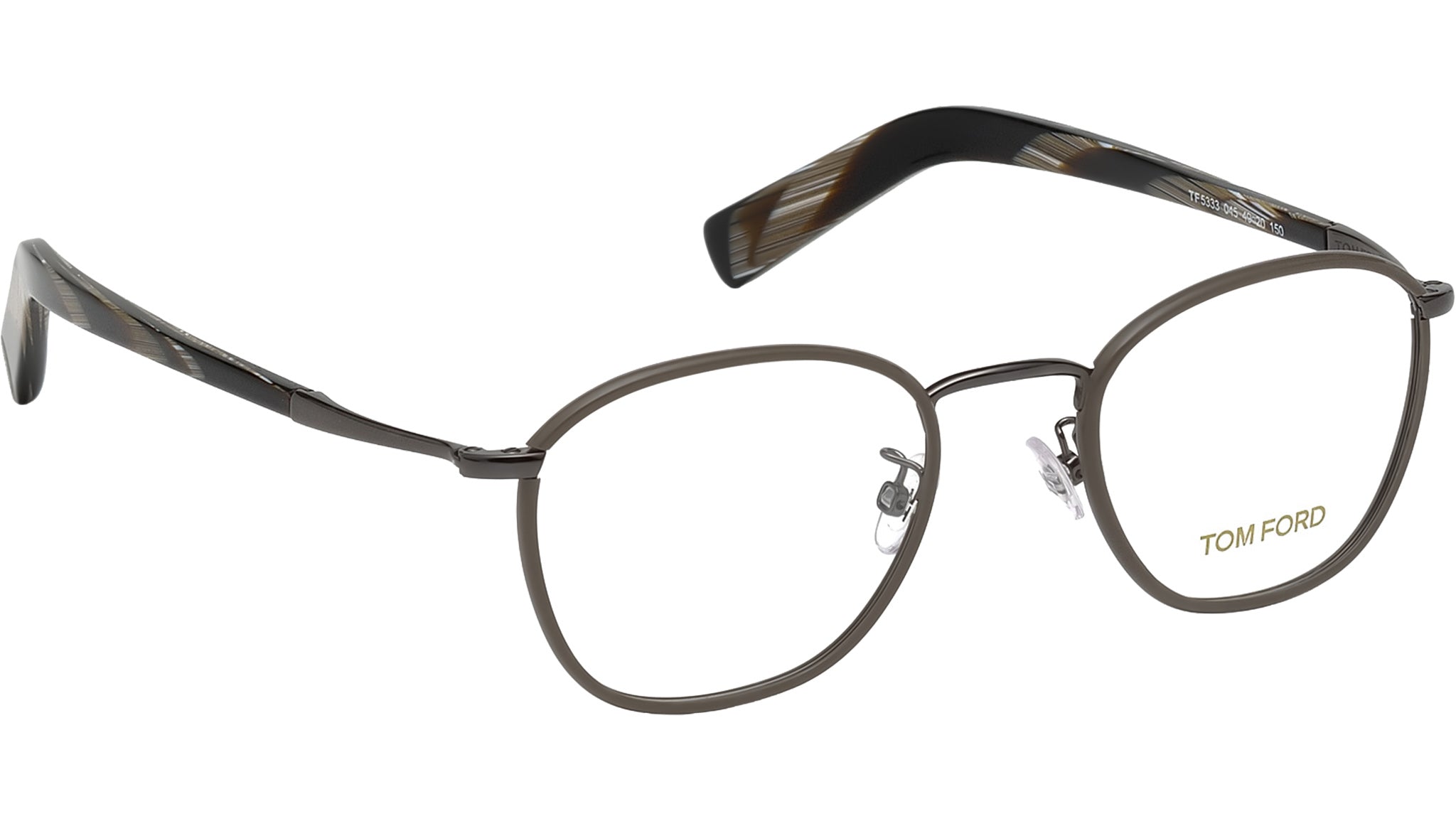 Occhiali da vista Tom Ford uomo modello FT5333 con montatura rotonda full-rim marrone chiaro in acetato e lenti demo. Codice Brand: 5333. Codice colore: 045. Rivenditore autorizzato Tom Ford online. Gli occhiali vengono consegnati con custodia e accessori originali e sono coperti da garanzia standard di 12 mesi del produttore.