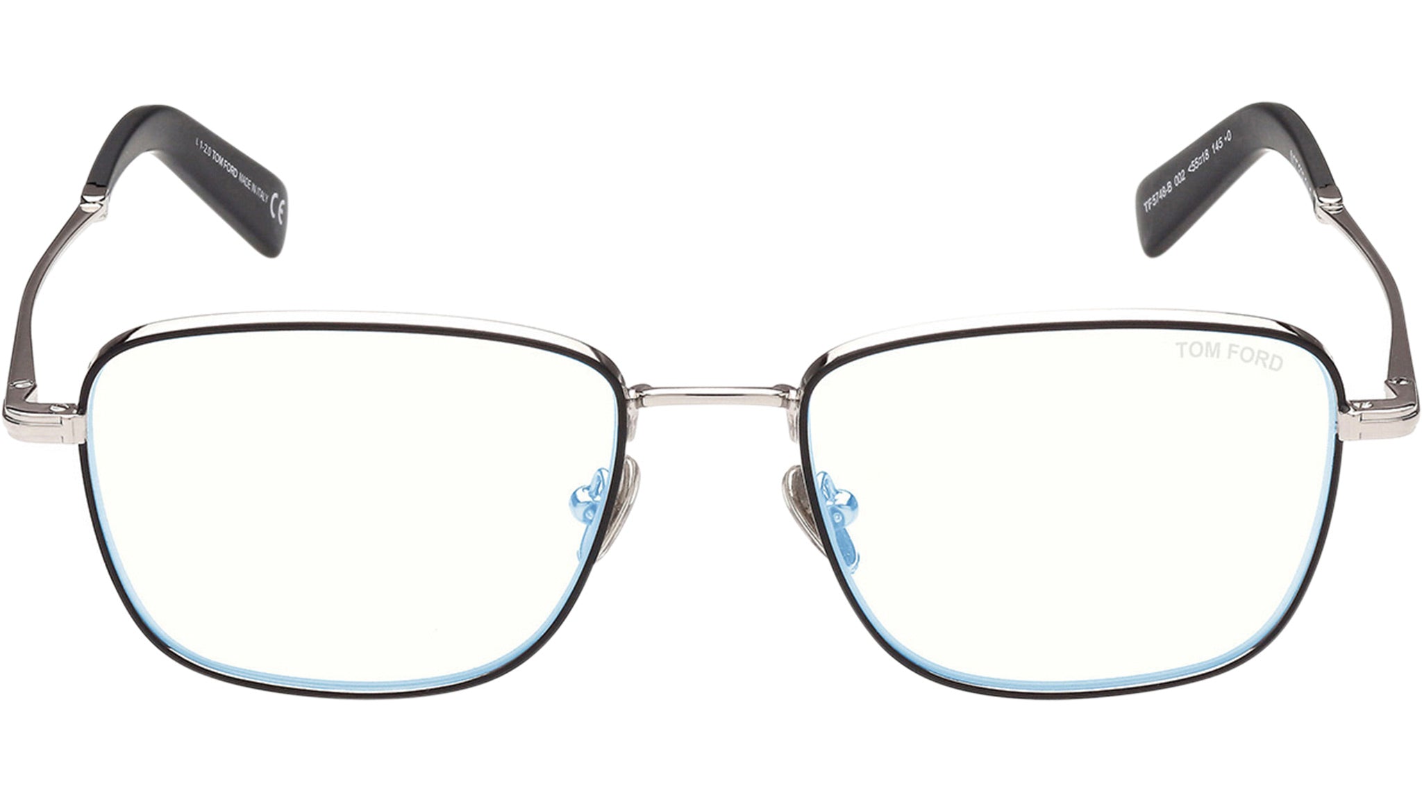 Occhiali da vista Tom Ford uomo modello FT5748-B in metallo colore 002 nero opaco / argento con lenti demo. Codice brand: FT5748. Codice colore: 002. Rivenditore autorizzato Tom Ford online. Gli occhiali vengono consegnati con custodia e accessori originali e sono coperti da garanzia standard di 12 mesi del produttore.