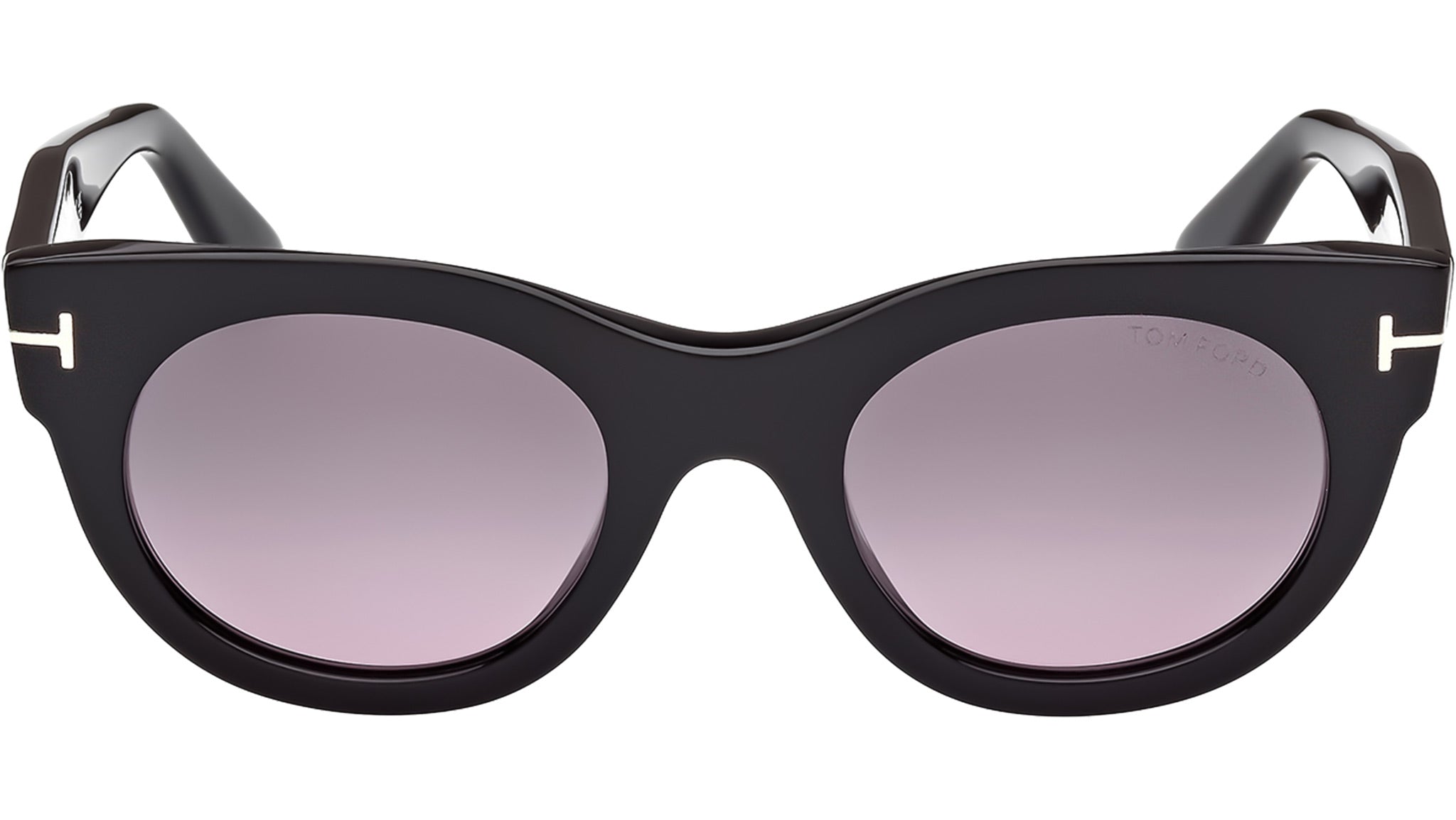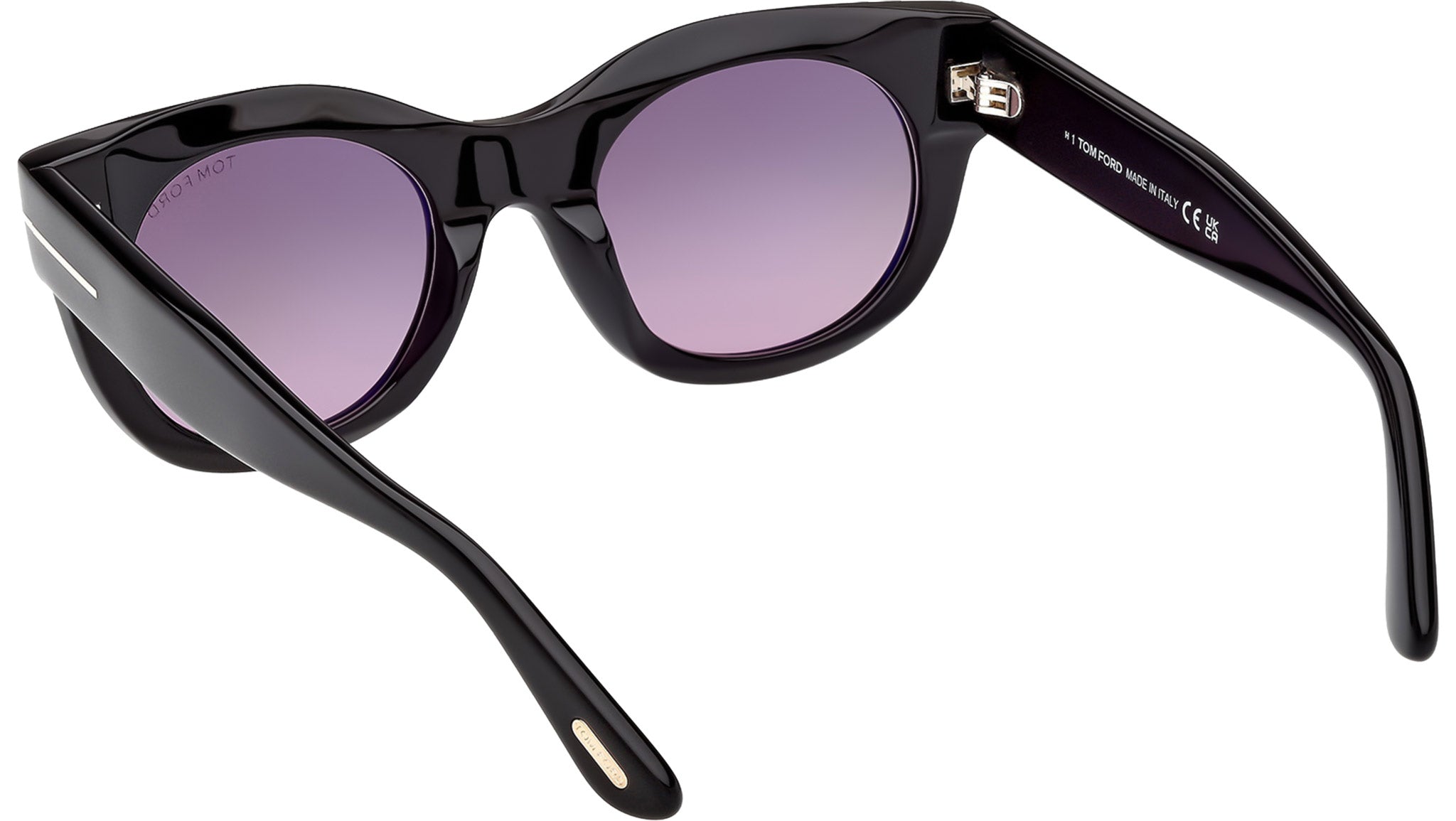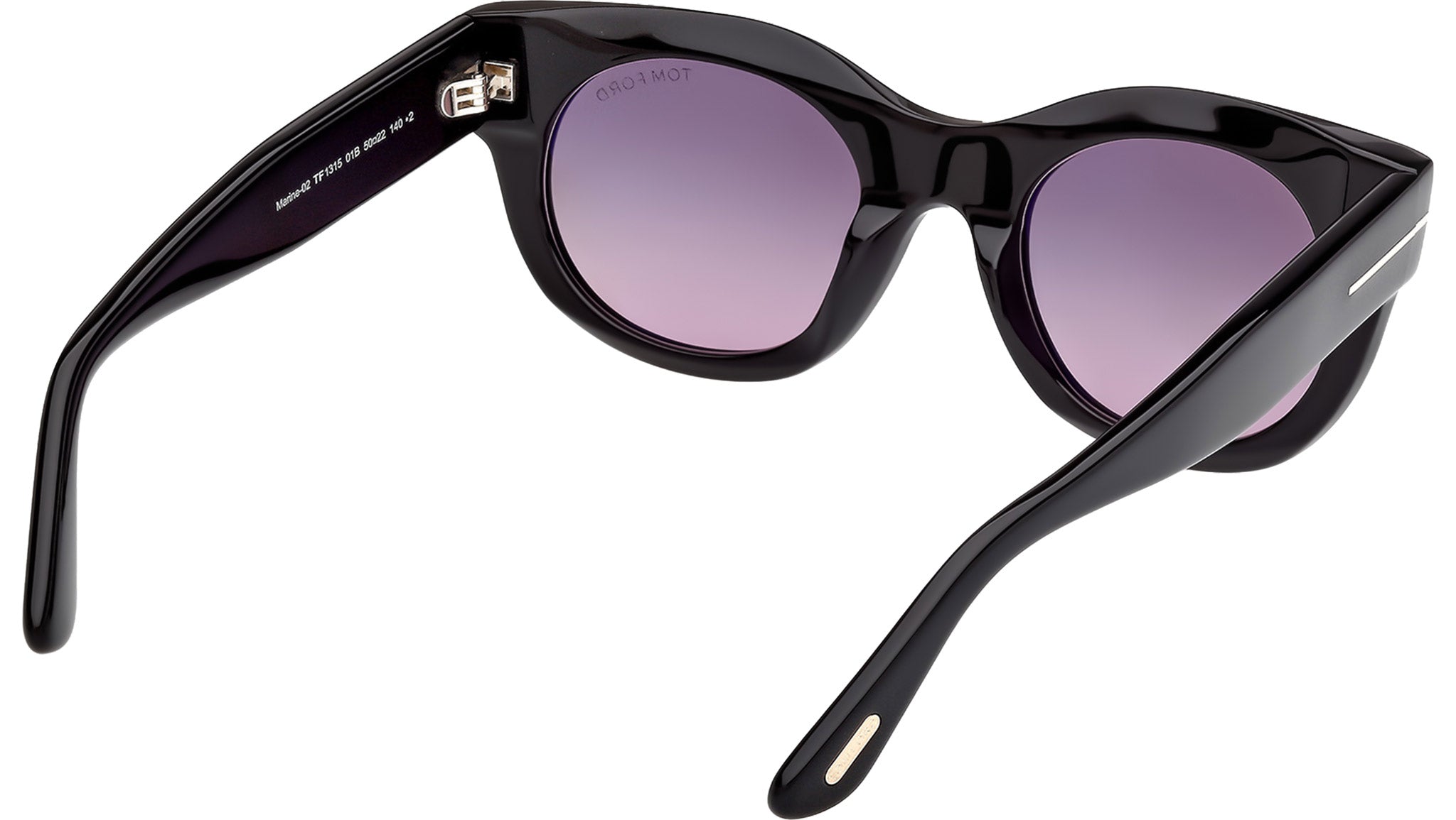 Occhiali da sole Tom Ford donna modello Marine-02 FT1315 con montatura rotonda full-rim in acetato nero lucido e lenti color grigio fumo sfumato. Codice Brand: 1315. Codice colore: 01B. Rivenditore autorizzato Tom Ford online. Gli occhiali vengono consegnati con custodia e accessori originali e sono coperti da garanzia standard di 12 mesi del produttore.
