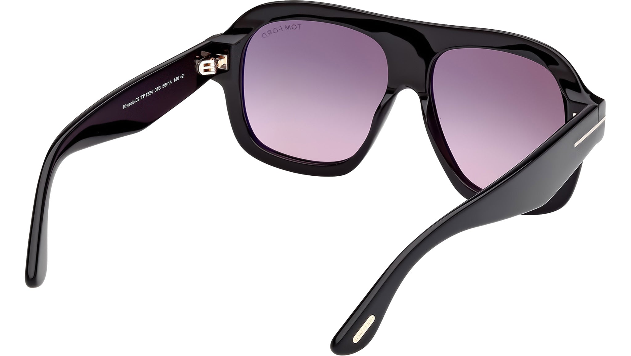 Occhiali da sole Tom Ford donna modello Rhonda-02 FT1324 con montatura navigator full-rim in acetato nero lucido e lenti color grigio fumo sfumato. Codice Brand: 1324. Codice colore: 01B. Rivenditore autorizzato Tom Ford online. Gli occhiali vengono consegnati con custodia e accessori originali e sono coperti da garanzia standard di 12 mesi del produttore.
