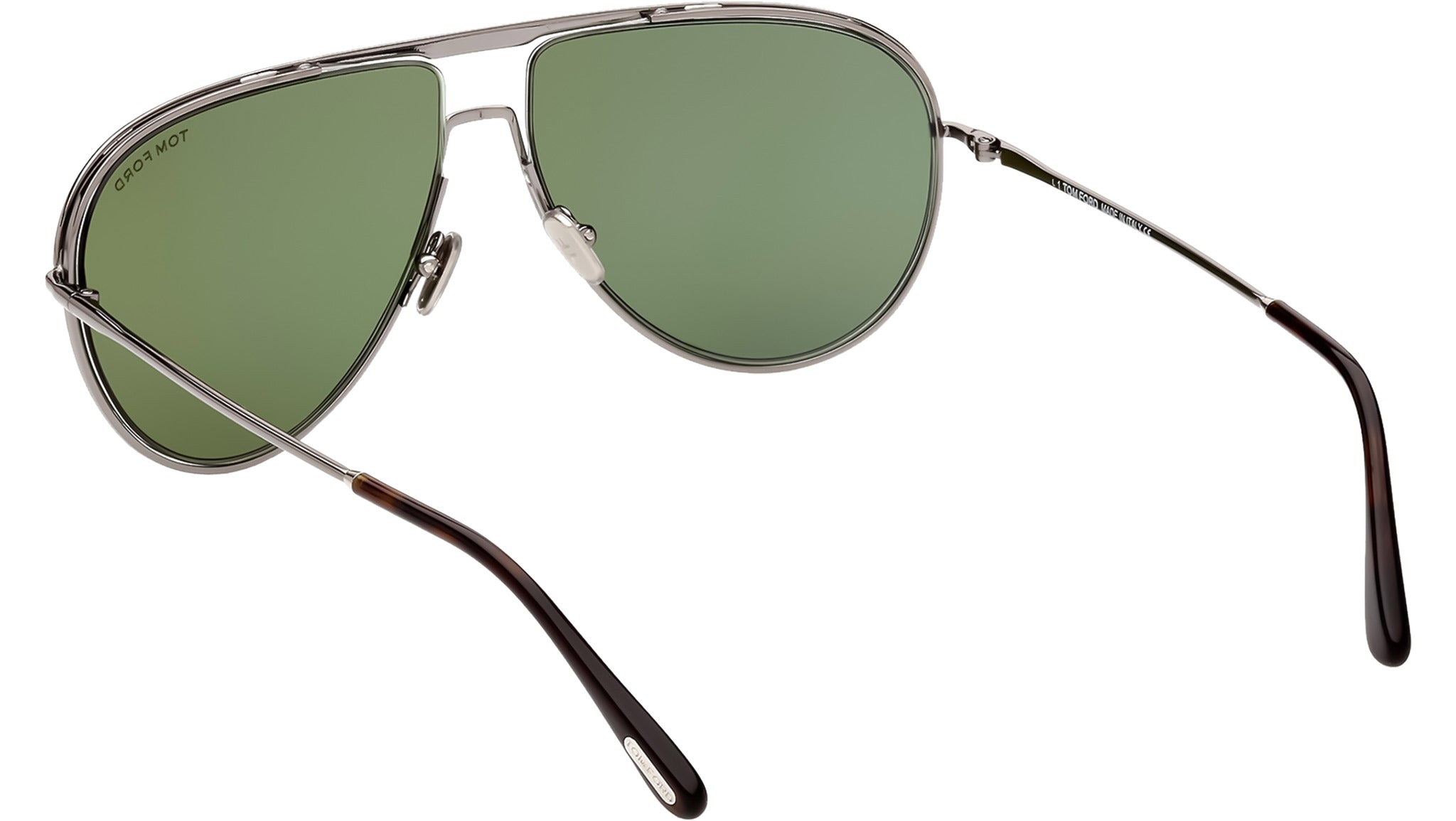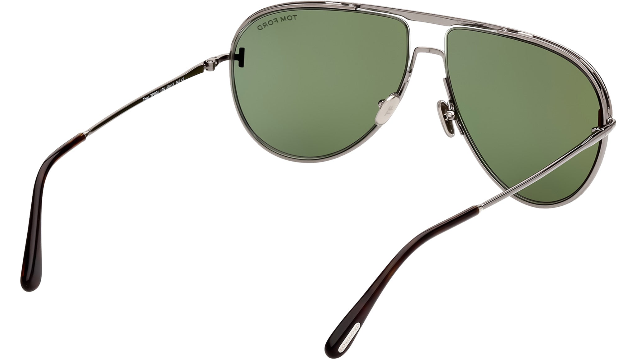 Occhiali da sole unisex Tom Ford modello Theo FT0924 in metallo rutenio scuro lucido con lenti color verde. Codice brand: 0924. Codice colore: 12N. Rivenditore autorizzato Tom Ford online. Gli occhiali vengono consegnati con custodia e accessori originali e sono coperti da garanzia standard di 12 mesi del produttore.