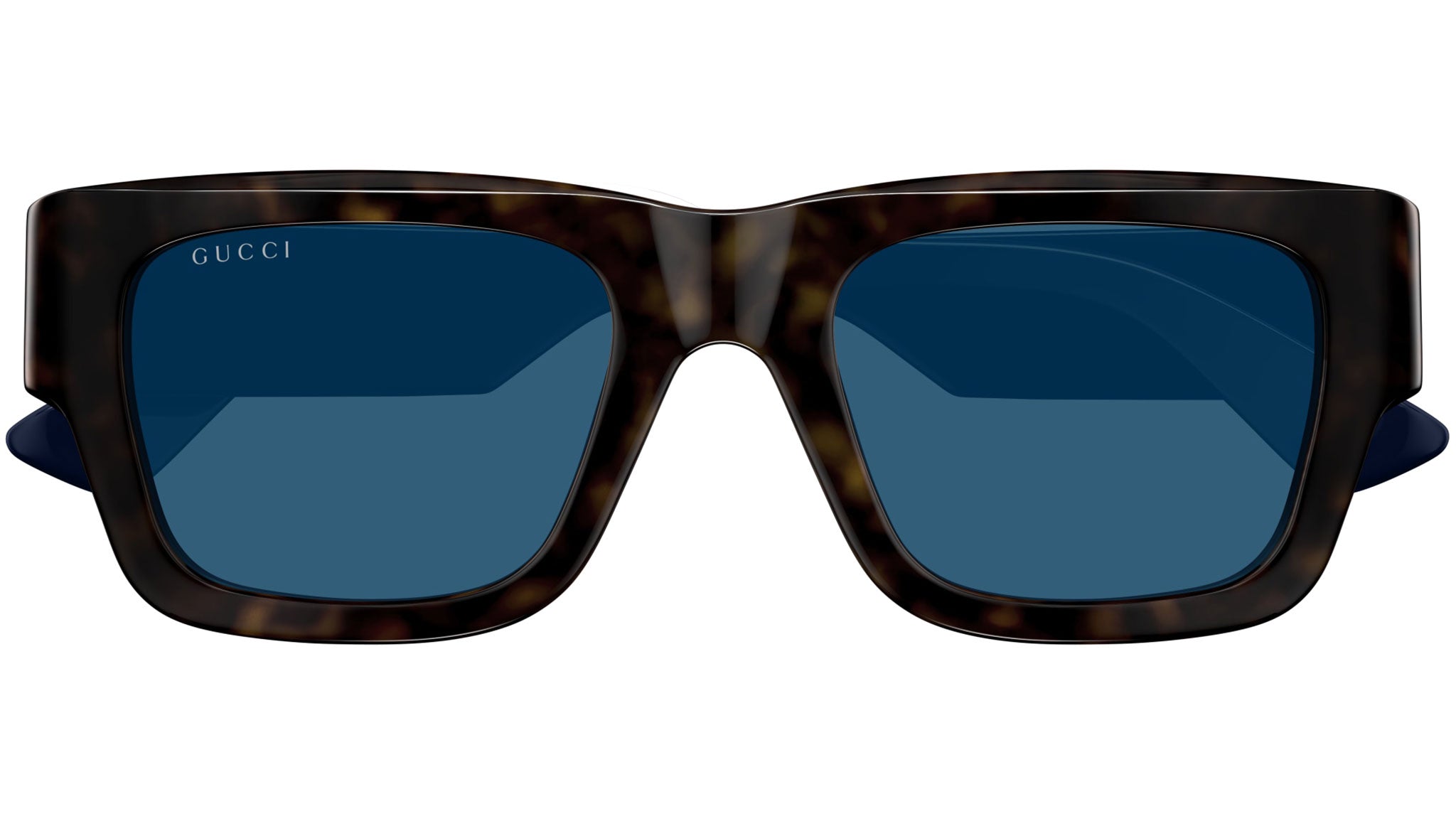 Occhiali da sole Gucci modello GG1668S linea Lettering in acetato riciclato forma rettangolare codice colore 002 tartaruga scuro lucido con aste rosso e lenti blu tinta unita. Rivenditore autorizzato Gucci online. Gli occhiali vengono consegnati con custodia e accessori originali e sono coperti dalla garanzia ufficiale di 12 mesi del produttore.