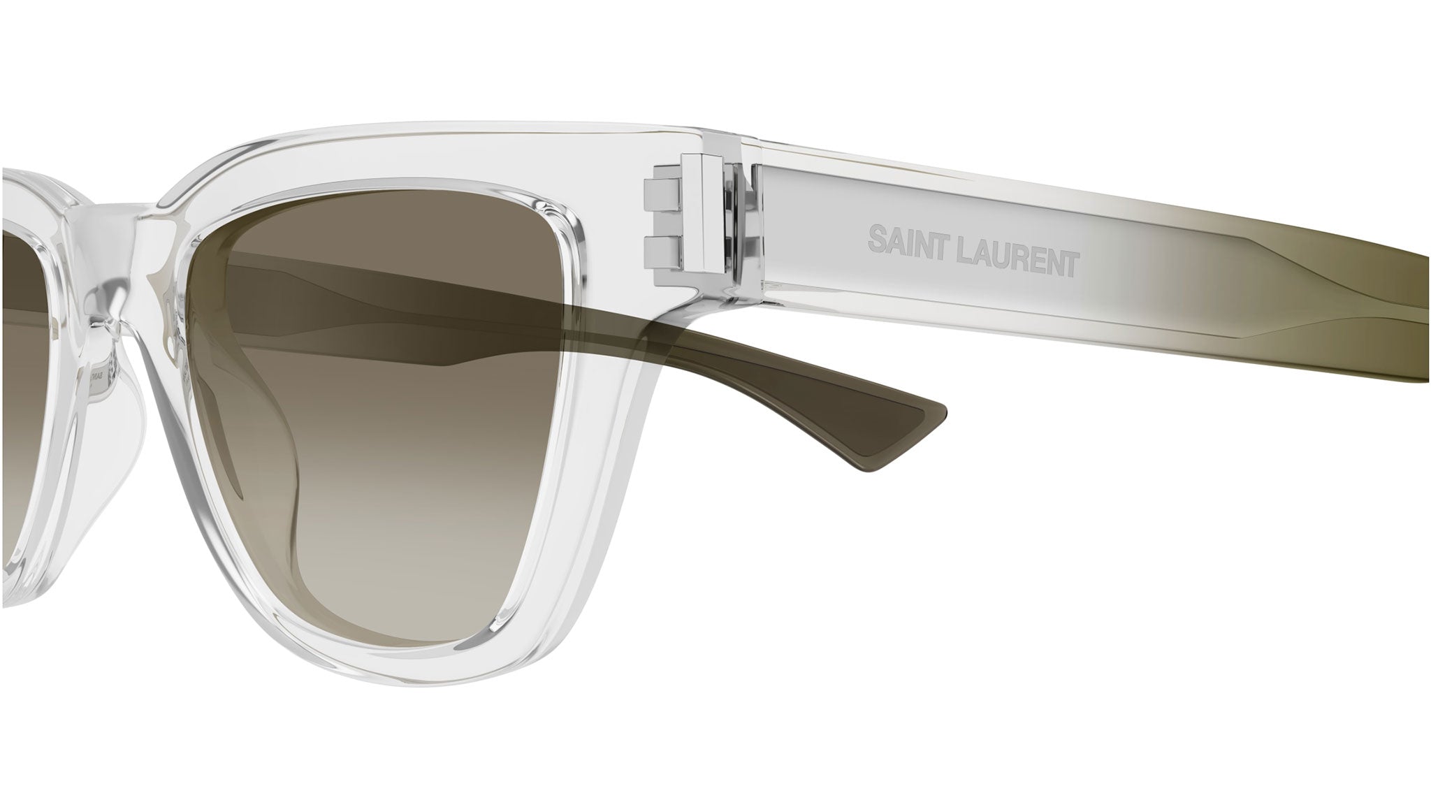 Occhiali da sole Saint Laurent SL 789 JACQUES 004 uomo con montatura rettangolare in acetato riciclato cristallo e lenti doppia sfumatura khaki / crema. Linea: Corner Angle. Codice modello: SL 789 JACQUES. Codice colore: 004. Made in Japan. Rivenditore autorizzato Saint Laurent online. Gli occhiali vengono consegnati con custodia e accessori originali e sono coperti dalla garanzia ufficiale di 12 mesi del produttore.