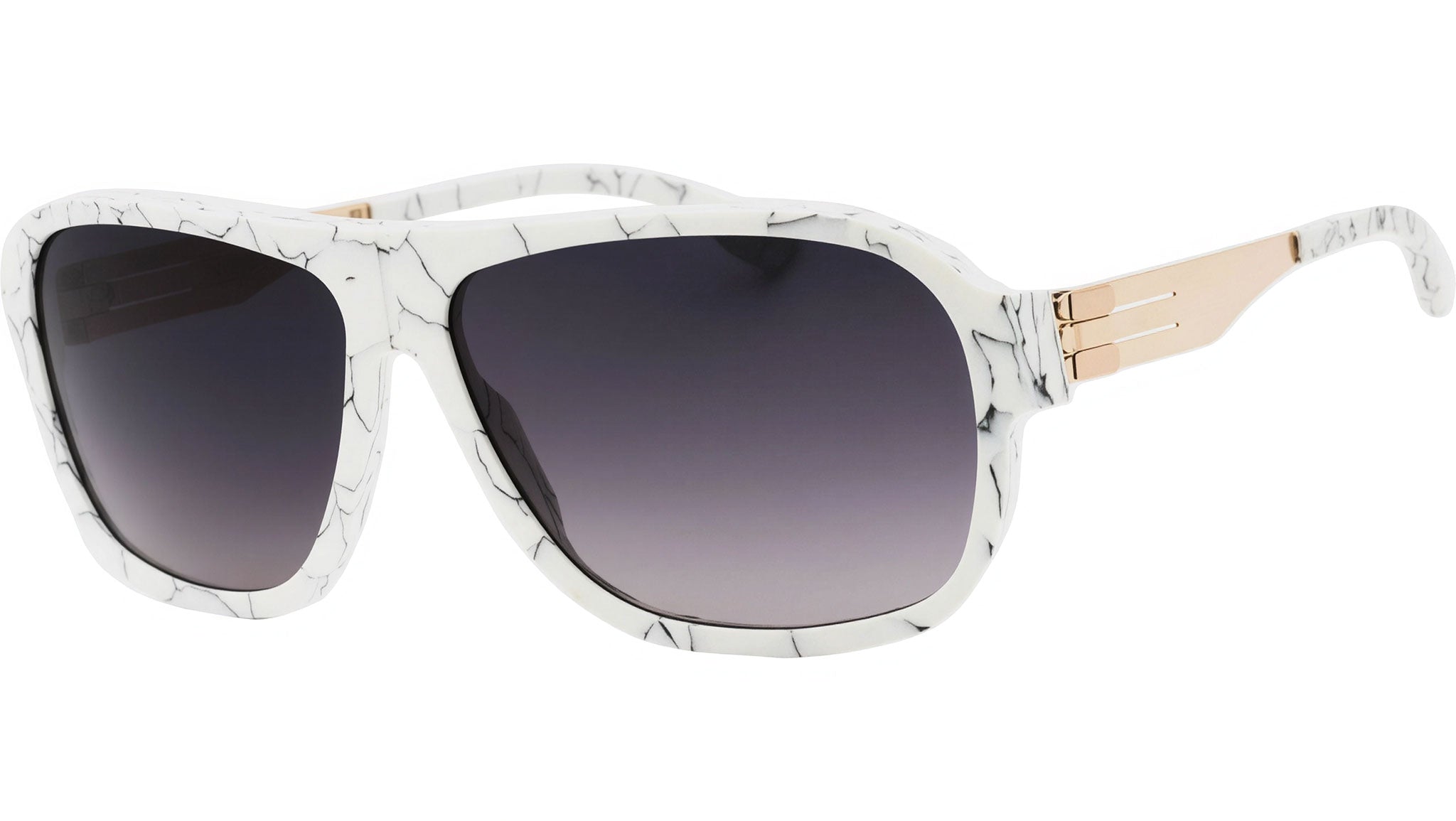 Occhiali da sole ic! berlin uomo modello Power Law A0557 con montatura navigator full-rim in acetato marmo bianco grezzo e lenti color grigio sfumato. Codice Brand: A0557. Codice colore: 310. Rivenditore autorizzato ic! berlin online. Gli occhiali vengono consegnati con custodia e accessori originali e sono coperti da garanzia standard di 12 mesi del produttore.