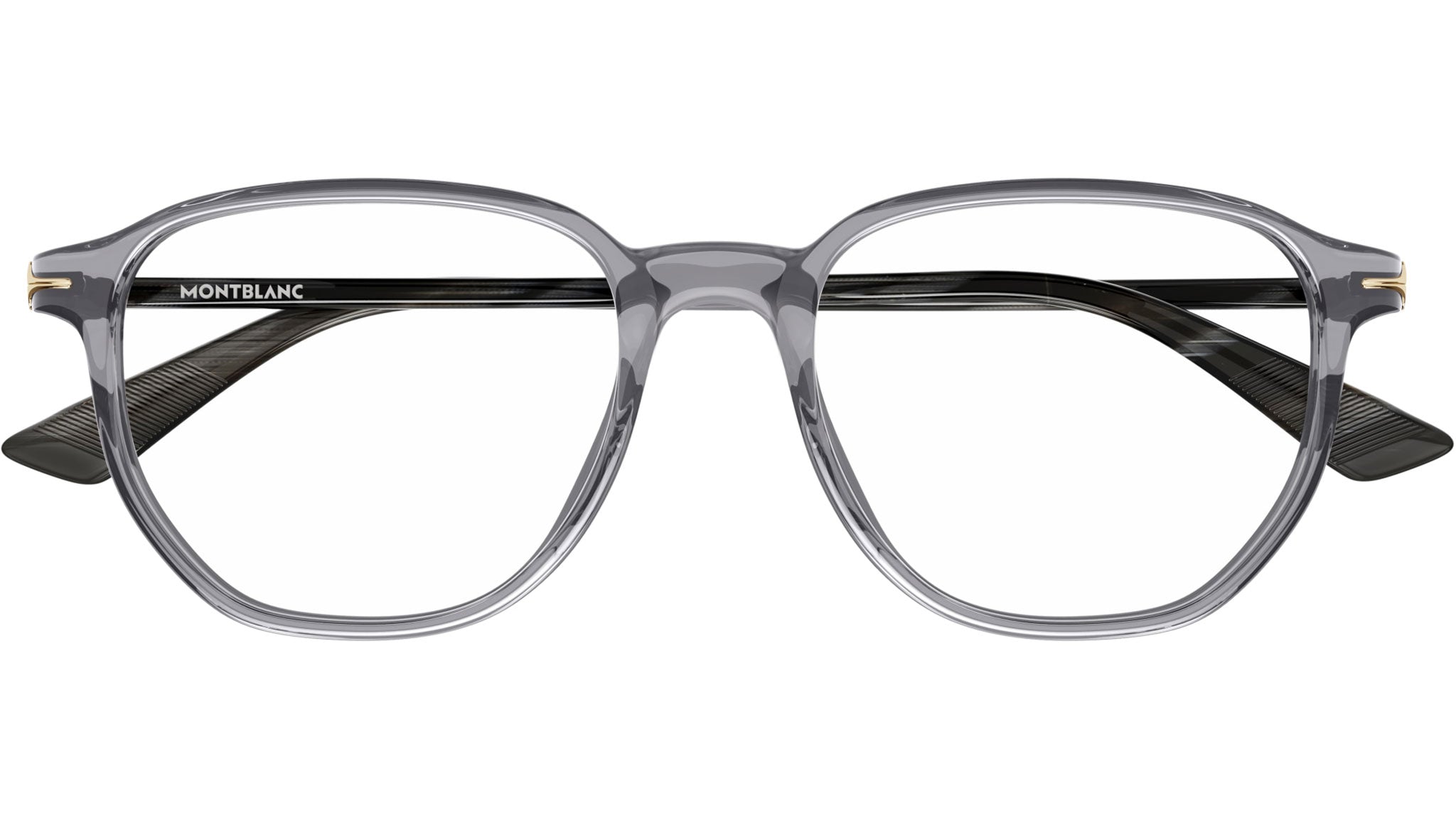 Occhiali da vista Montblanc Nib modello MB0366O in acetato riciclato rettangolare codice colore 004 grigio scuro trasparente lucido con aste in grigio e lenti demo. Rivenditore autorizzato Montblanc online. Gli occhiali vengono consegnati con custodia e accessori originali e sono coperti dalla garanzia ufficiale di 12 mesi del produttore.