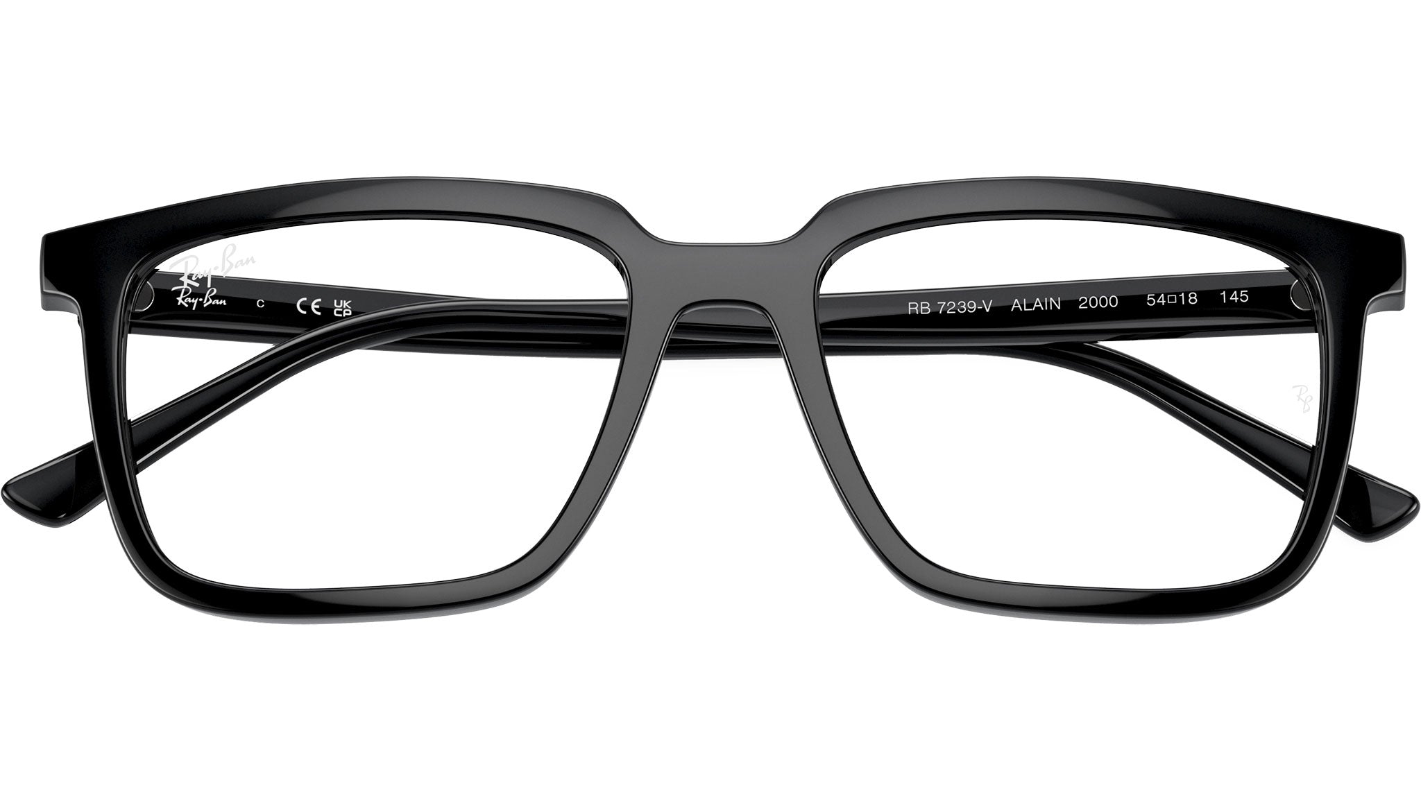 Occhiali da vista Ray-Ban Alain RB7239 2000 unisex con montatura rettangolare in propionato nero e lenti demo. Vestibilità a ponte alto. Linea: Essentials. Codice modello: 0RX7239. Codice colore: 2000. Rivenditore autorizzato Ray-Ban online. Gli occhiali vengono consegnati con custodia e accessori originali e sono coperti dalla garanzia ufficiale di 12 mesi del produttore.