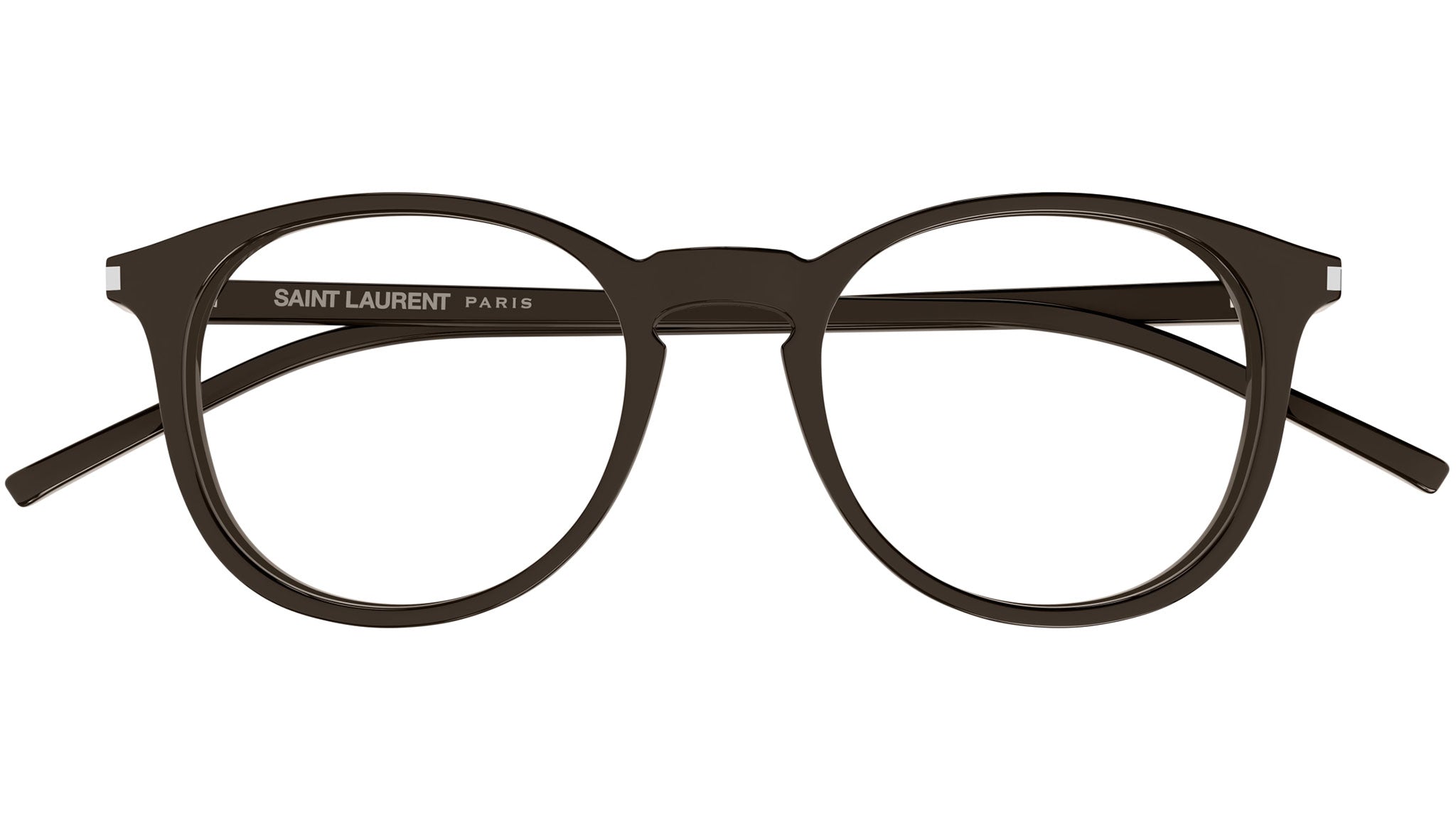 Occhiali da vista Saint Laurent SL 106 021 unisex con montatura pantos in acetato marrone scuro lucido tinta unita e lenti demo. Linea: Classic. Codice modello: SL 106. Codice colore: 021. Made in Italy. Rivenditore autorizzato Saint Laurent online. Gli occhiali vengono consegnati con custodia e accessori originali e sono coperti dalla garanzia ufficiale di 12 mesi del produttore.