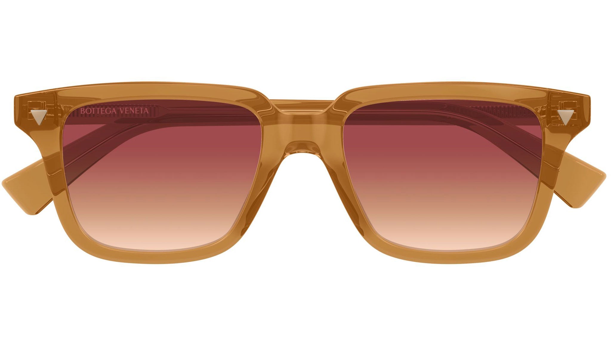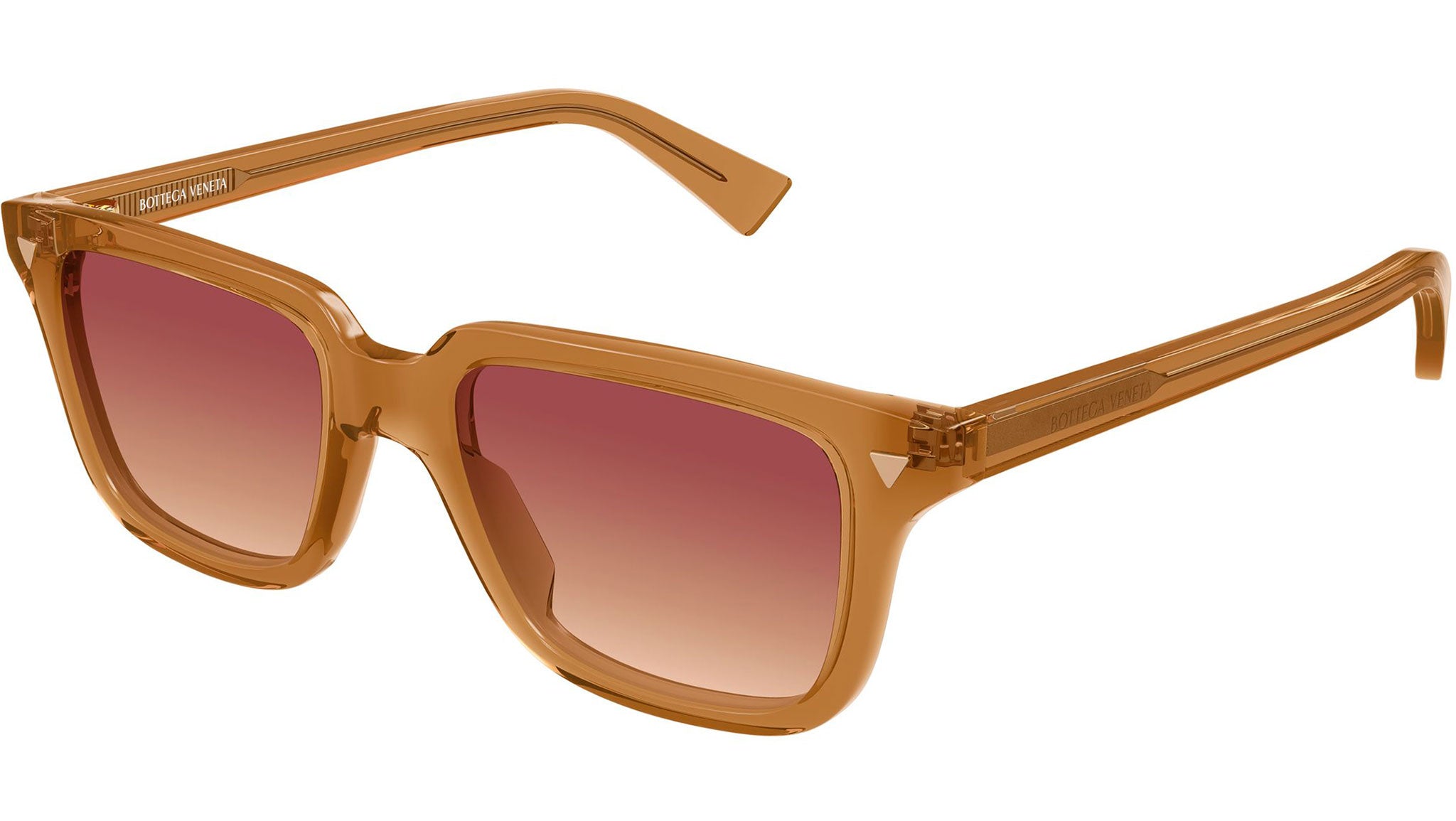 Occhiali da sole Bottega Veneta BV1363S 006 unisex con montatura rettangolare in acetato riciclato arancione polveroso trasparente lucido e lenti doppia sfumatura bordeaux e arancione. Linea: Triangle. Codice modello: BV1363S. Codice colore: 006. Made in Italy. Rivenditore autorizzato Bottega Veneta online. Gli occhiali vengono consegnati con custodia e accessori originali e sono coperti dalla garanzia ufficiale di 12 mesi del produttore.