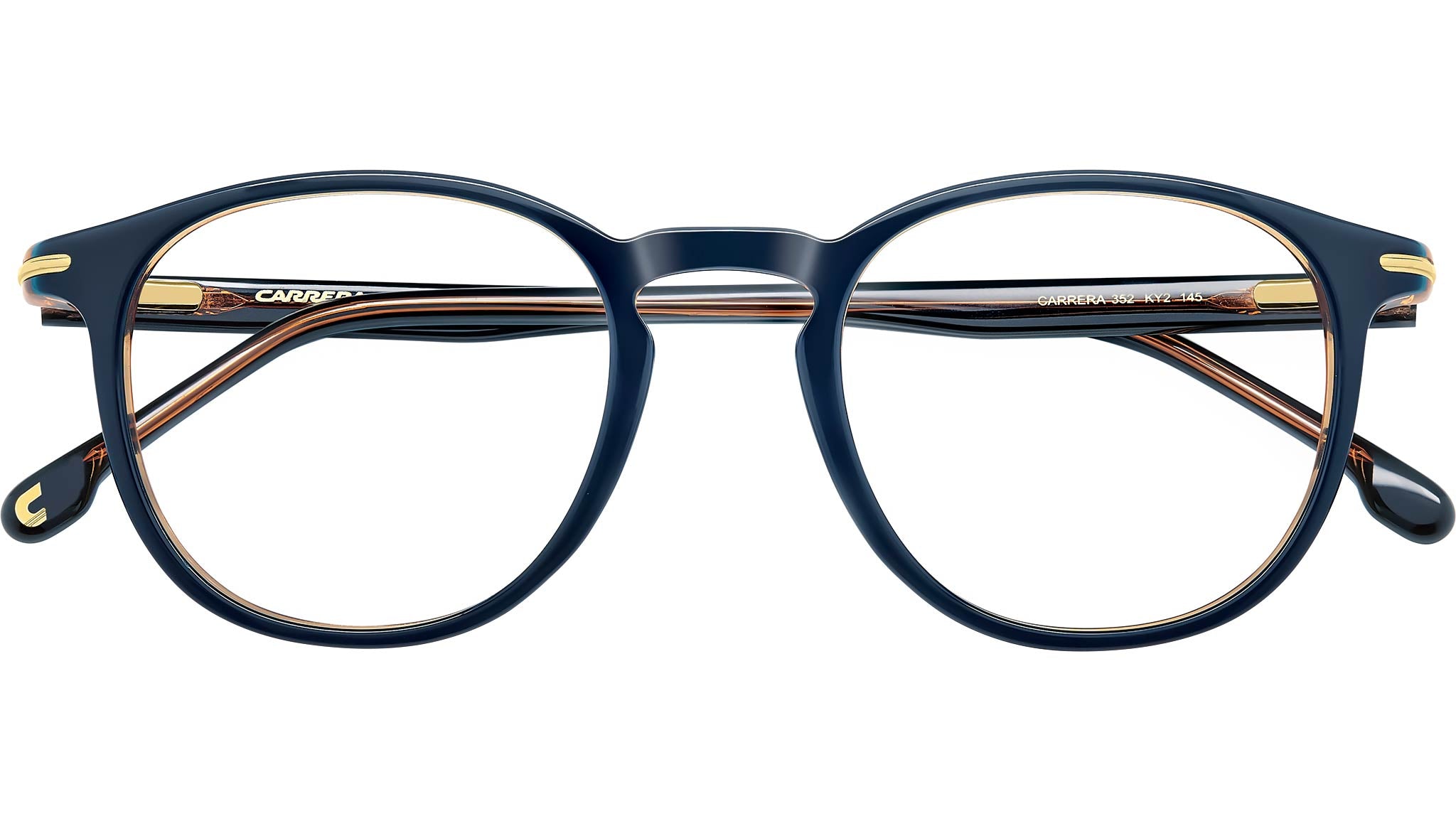 Occhiali da vista Carrera 352 KY2 uomo con montatura pantos in acetato blu oro e lenti demo. Occhiali da vista Carrera dal fascino senza tempo. La loro forma pantos con ponte a chiave è un classico che sta bene alla maggioranza dei volti. Sono pensati per una vestibilità quotidiana, in acetato ad alta densità ancora più sottile e leggero, con cerniere flessibili integrate. Non mancano gli elementi iconici di Carrera, come gli inserti metallici ai lati del frontale e le proposte multistrato che omaggiano la flag. Linea: Signature. Codice modello: 109365. Codice colore: KY2. Rivenditore autorizzato Carrera online. Gli occhiali vengono consegnati con custodia e accessori originali e sono coperti dalla garanzia ufficiale di 12 mesi del produttore.