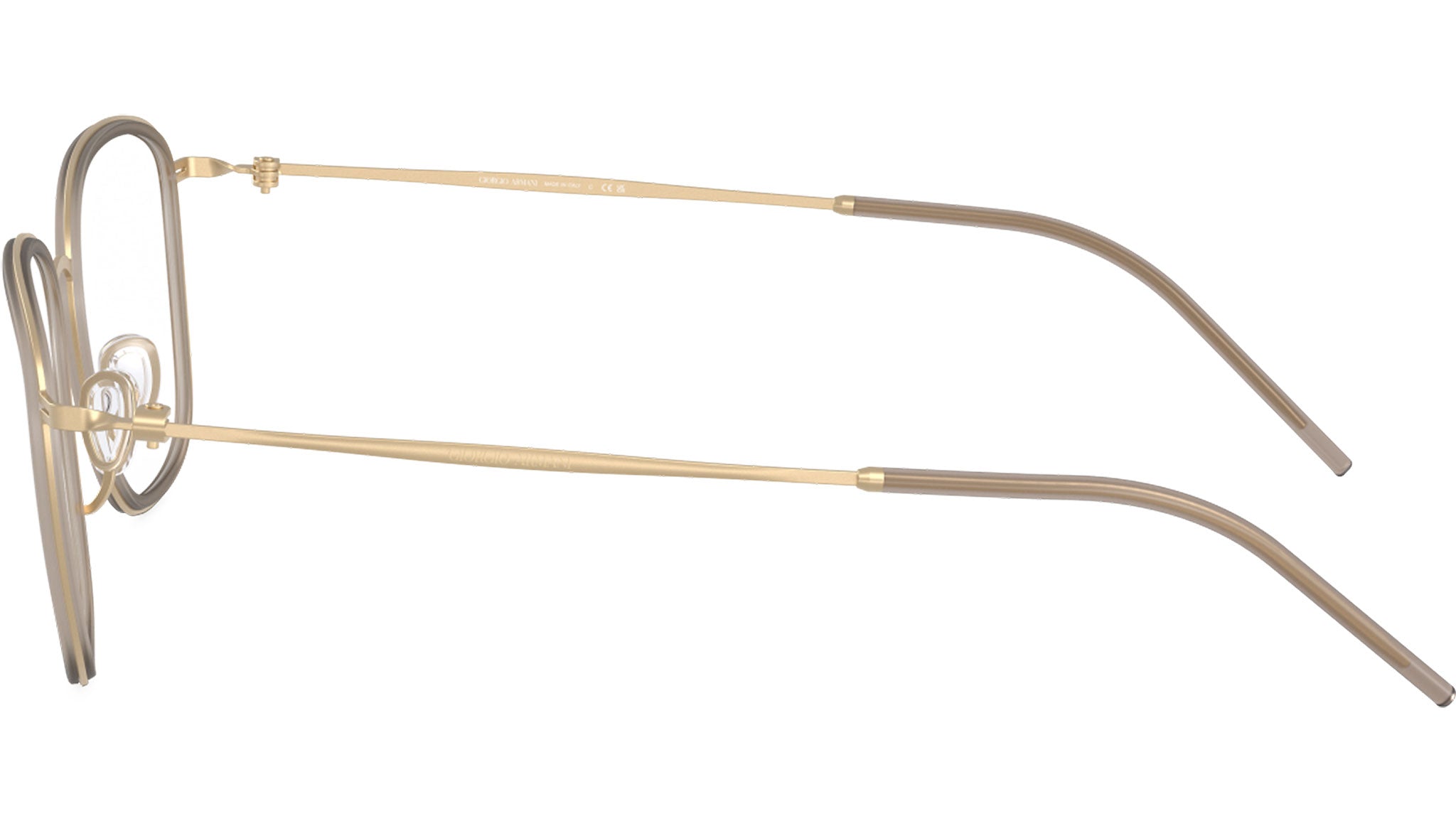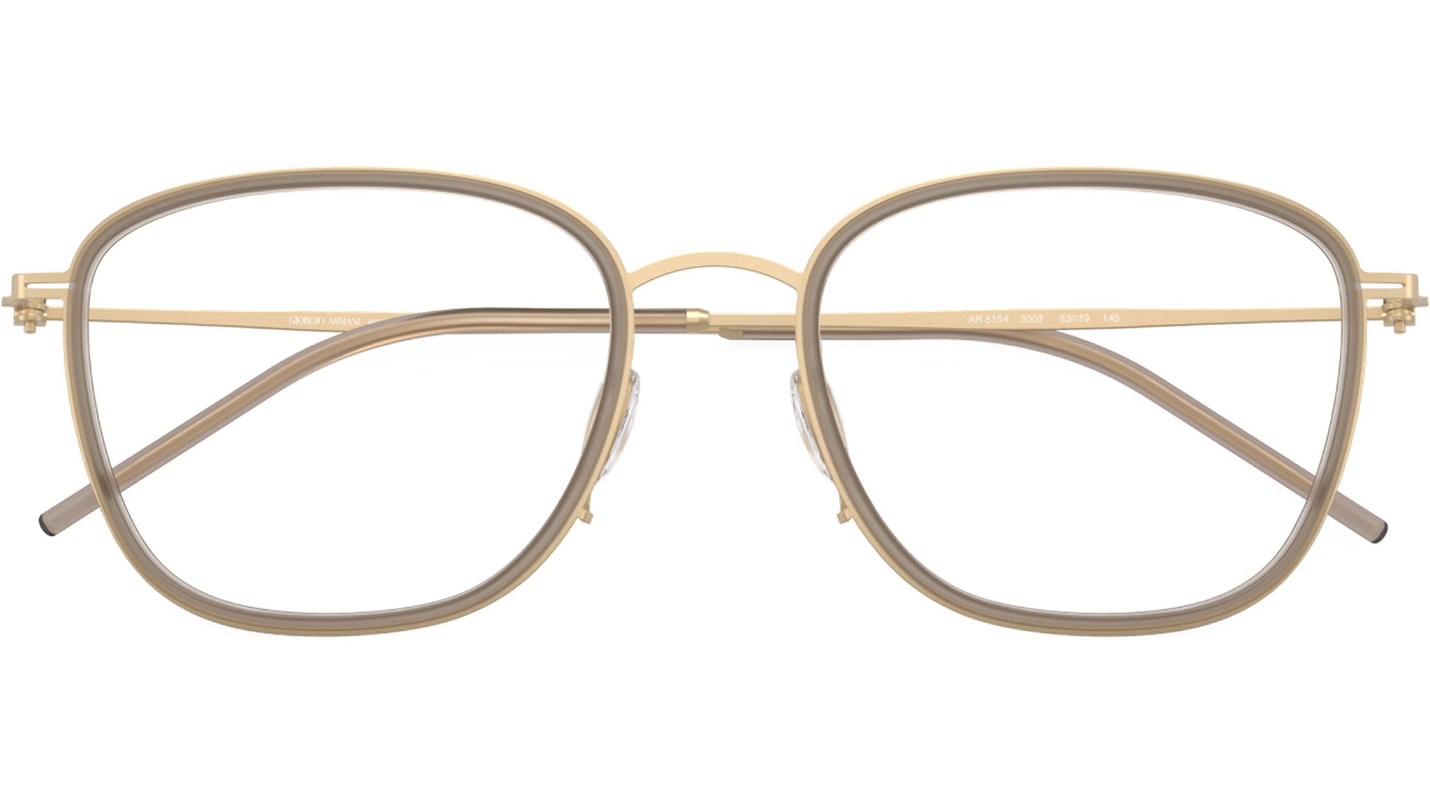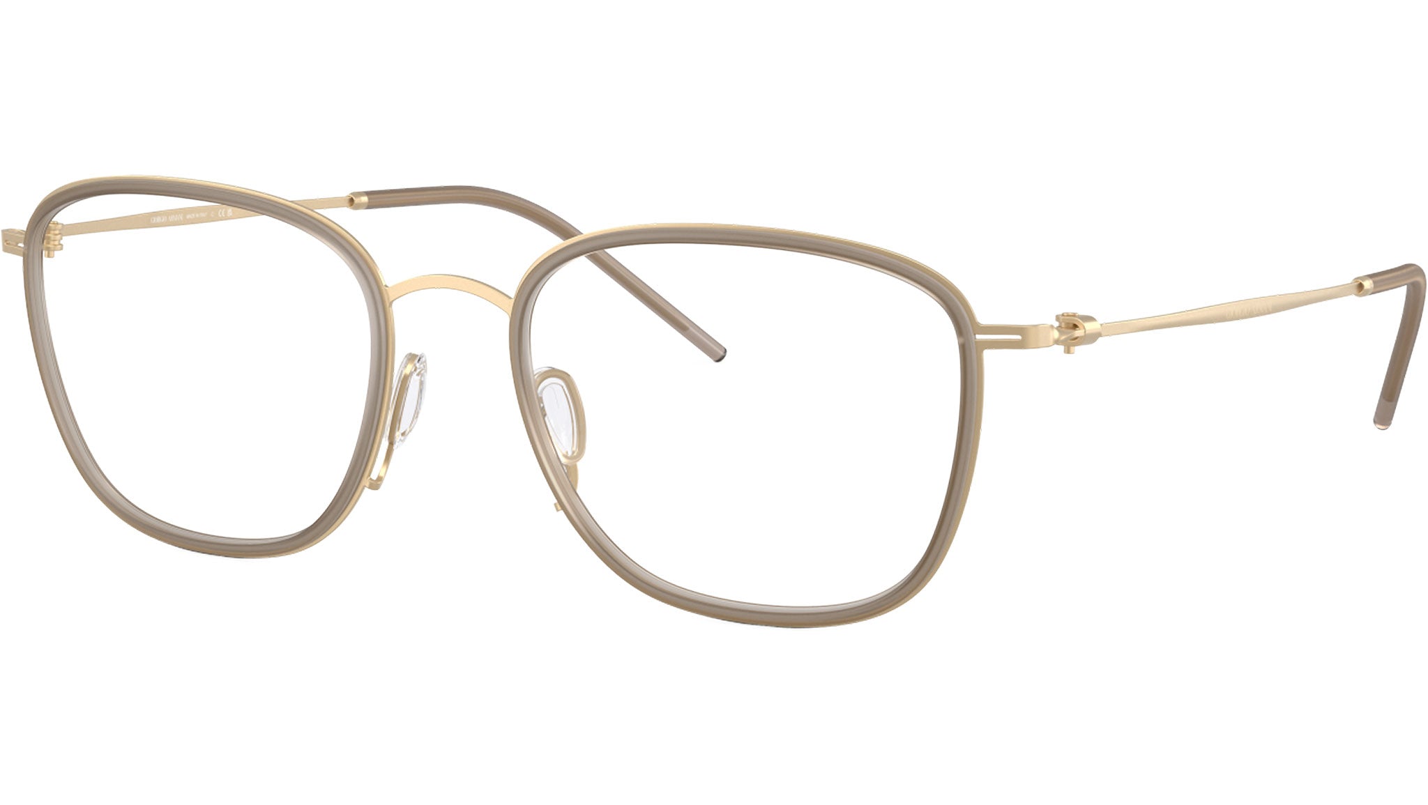 Occhiali da vista Giorgio Armani AR 5154 3002 con montatura d-frame in metallo oro chiaro opaco e lenti demo. Naselli regolabili. Linea: Visionary Luxury. Codice modello: 0AR5154. Codice colore: 3002. Rivenditore autorizzato Giorgio Armani online. Gli occhiali vengono consegnati con custodia e accessori originali e sono coperti dalla garanzia ufficiale di 12 mesi del produttore.