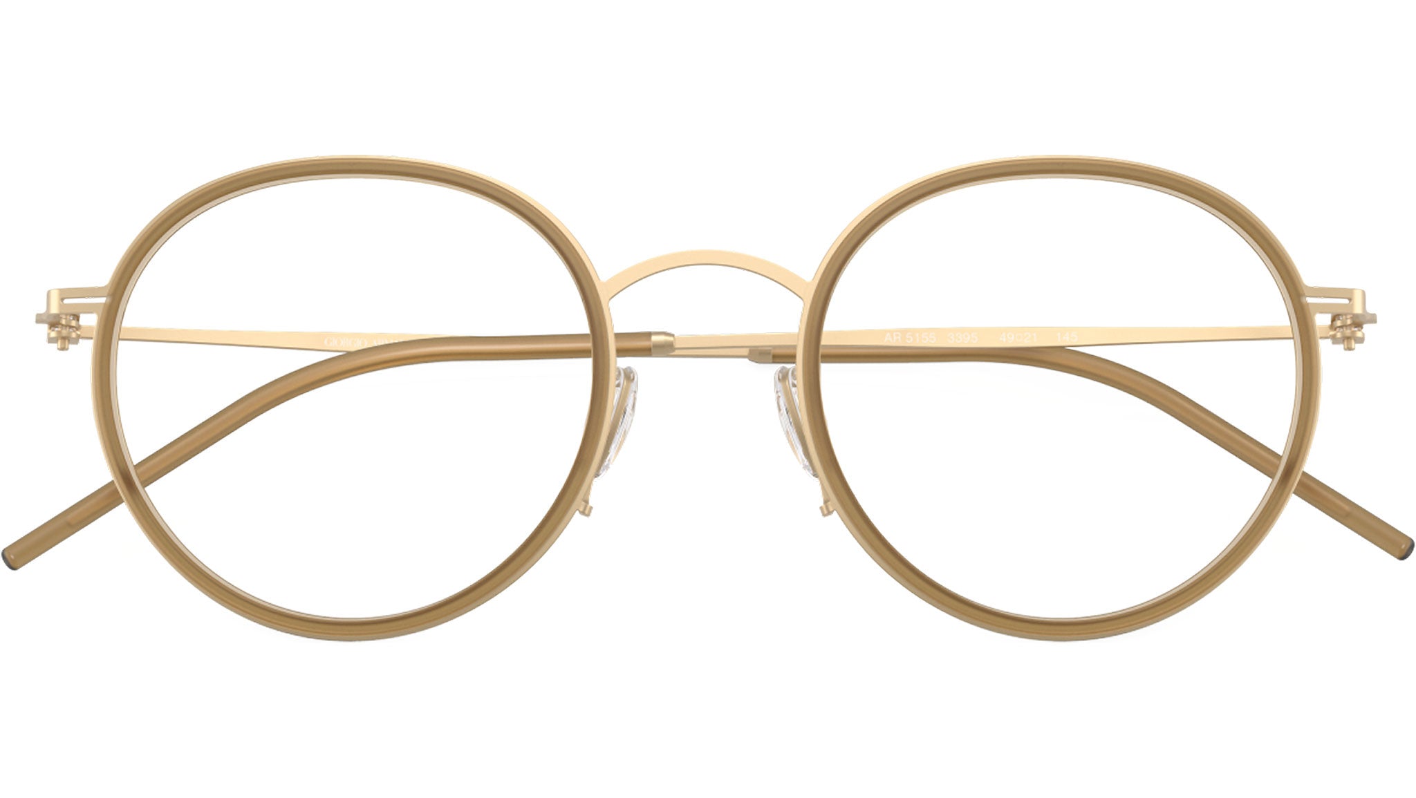 Occhiali da vista Giorgio Armani AR 5155 3395 con montatura rotonda in metallo oro chiaro opaco e lenti demo. Naselli regolabili. Linea: Visionary Luxury. Codice modello: 0AR5155. Codice colore: 3395. Rivenditore autorizzato Giorgio Armani online. Gli occhiali vengono consegnati con custodia e accessori originali e sono coperti dalla garanzia ufficiale di 12 mesi del produttore.