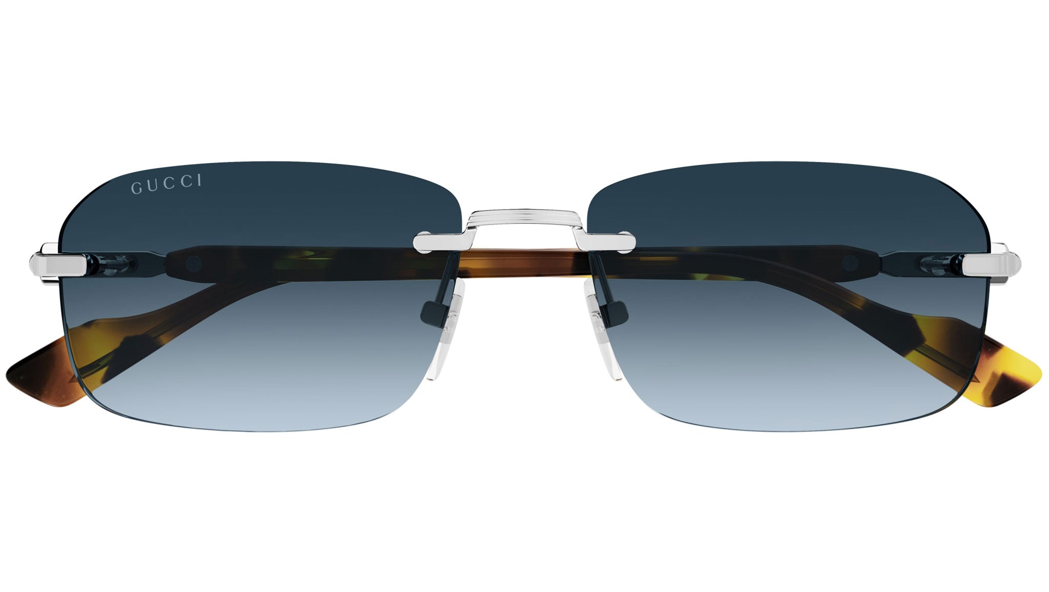 Occhiali da sole Gucci GG1221S 007 uomo con montatura rettangolare in metallo argento e lenti doppia sfumatura blu + azzurro. Linea: Gucci Logo. Codice modello: GG1221S. Codice colore: 007. Made in Japan. Rivenditore autorizzato Gucci online. Gli occhiali vengono consegnati con custodia e accessori originali e sono coperti dalla garanzia ufficiale di 12 mesi del produttore.