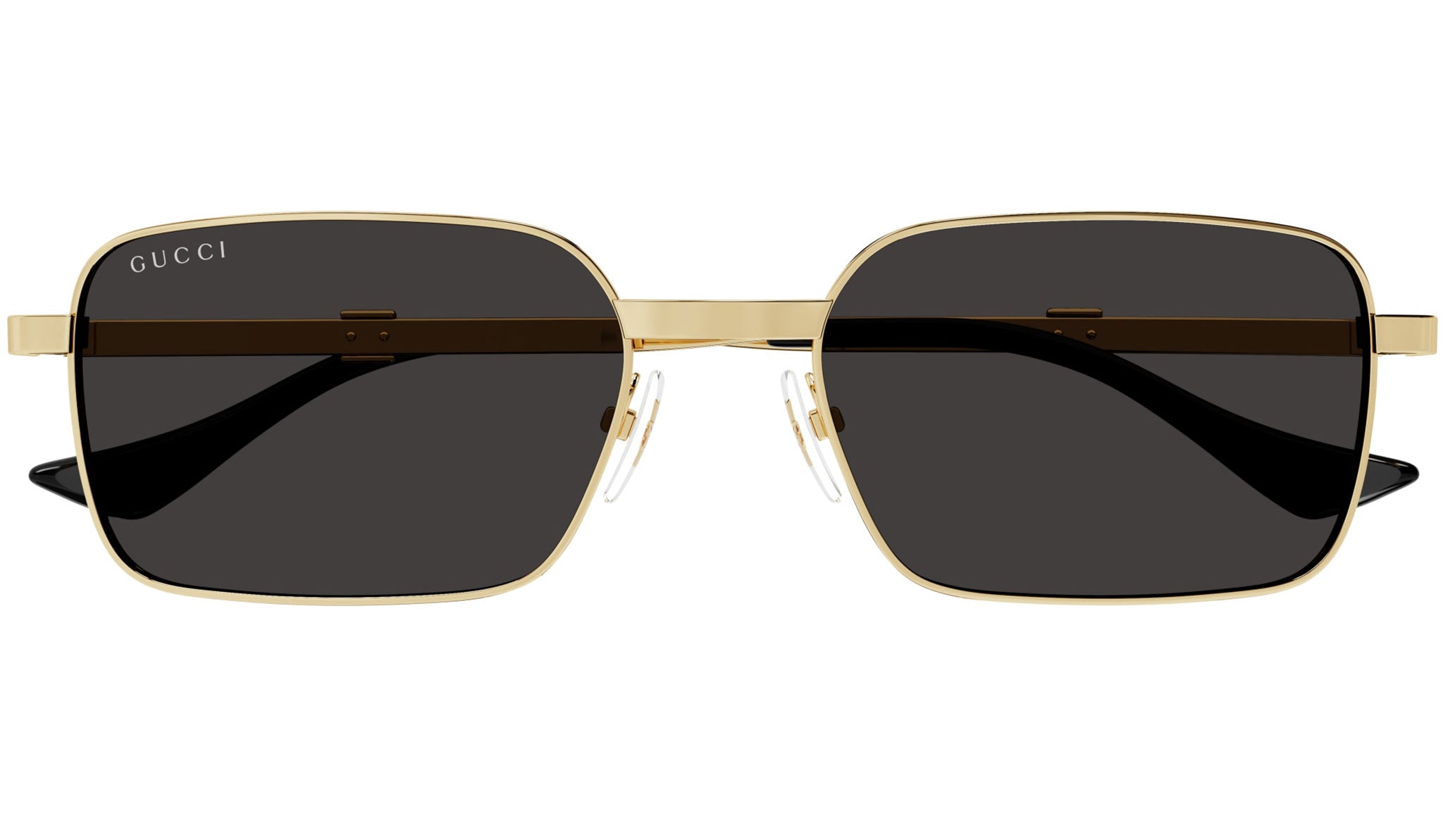 Occhiali da sole Gucci linea Web modello GG1495S rettangolari in metallo codice colore 001 oro endura lucido con aste oro e lenti color grigio tinta unita.