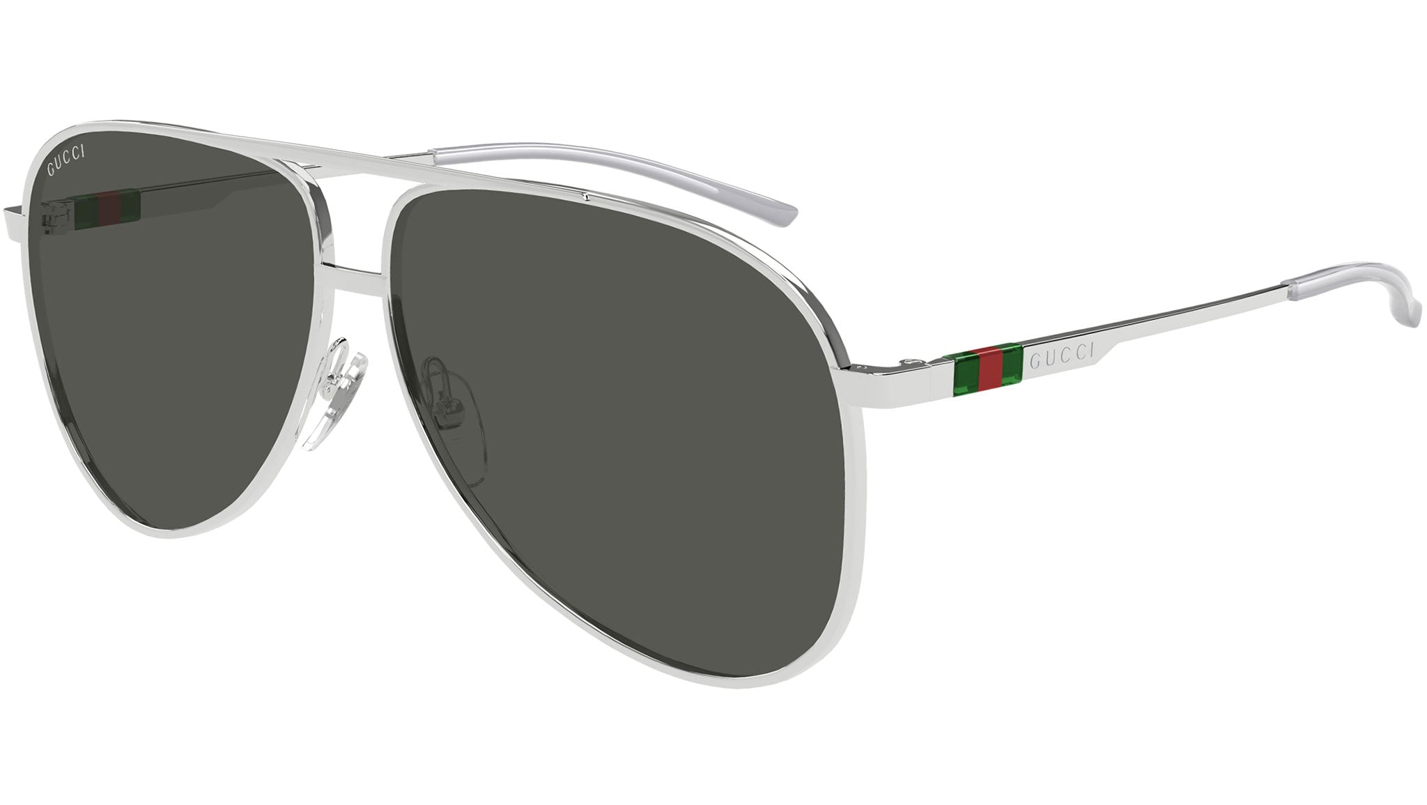 Occhiali da sole Gucci modello GG1677S linea Web in metallo forma aviatore codice colore 001 argento lucido con aste argento e lenti grigio tinta unita. Rivenditore autorizzato Gucci online. Gli occhiali vengono consegnati con custodia e accessori originali e sono coperti dalla garanzia ufficiale di 12 mesi del produttore.