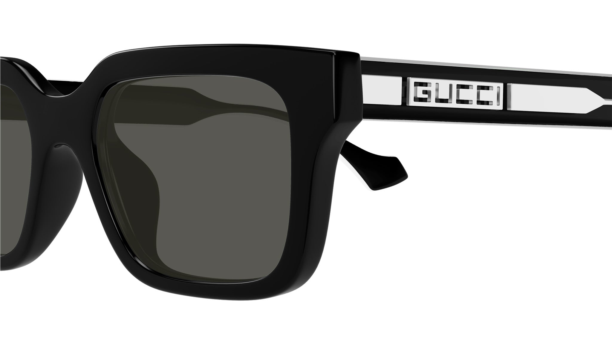 Occhiali da sole Gucci modello GG1732SK linea Lettering in iniettato forma rettangolare codice colore 001 nero lucido con aste cristallo trasparente e lenti grigio tinta unita. Rivenditore autorizzato Gucci online. Gli occhiali vengono consegnati con custodia e accessori originali e sono coperti dalla garanzia ufficiale di 12 mesi del produttore.