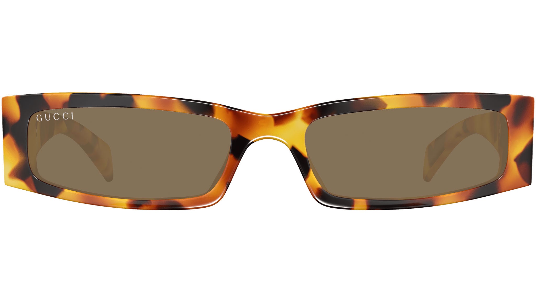 Occhiali da sole Gucci modello GG1778S linea Fashion in acetato riciclato forma rettangolare codice colore 008 avana maculato lucido con aste tartaruga e lenti marrone tinta unita. Rivenditore autorizzato Gucci online. Gli occhiali vengono consegnati con custodia e accessori originali e sono coperti dalla garanzia ufficiale di 12 mesi del produttore.