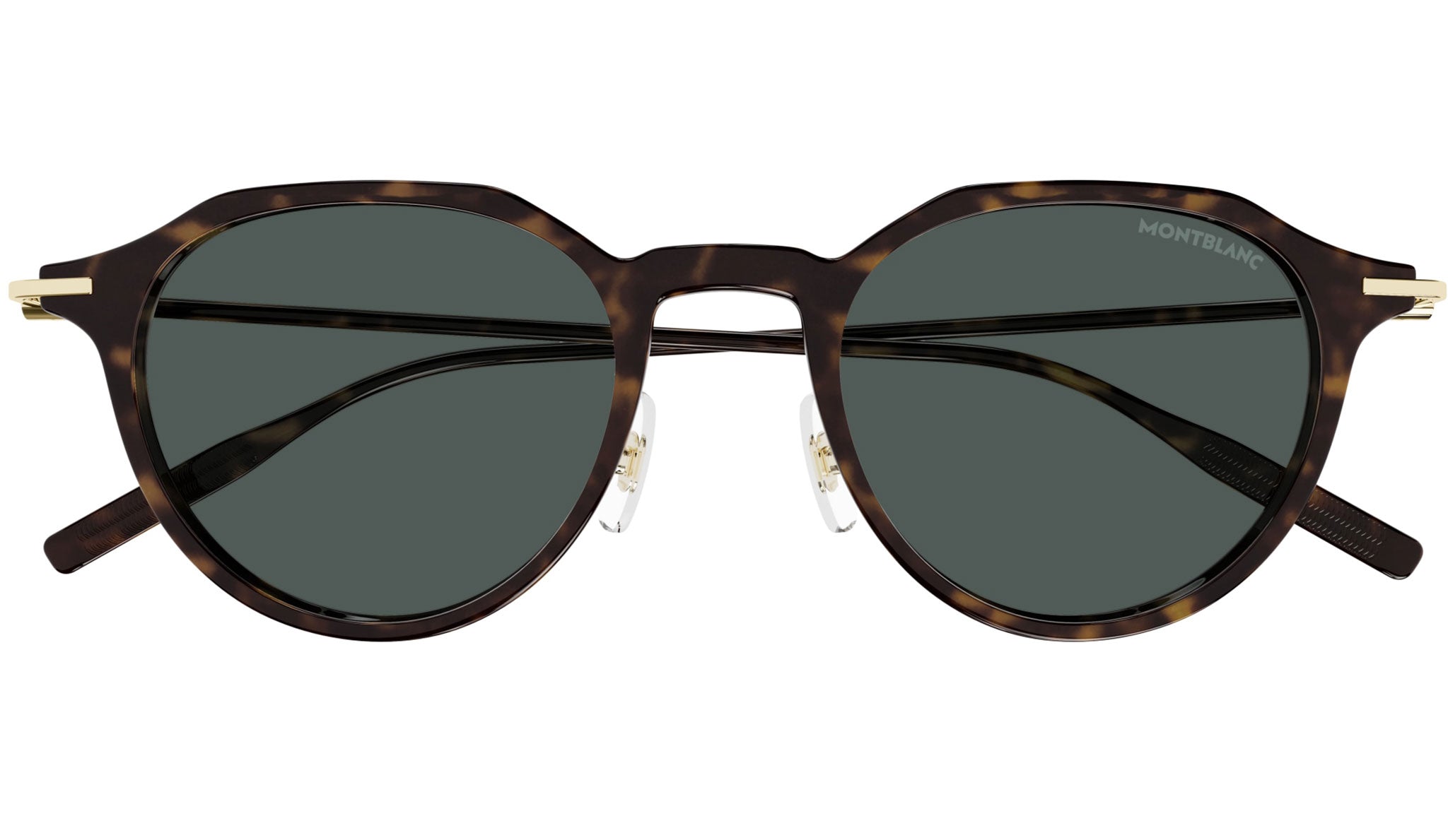 Occhiali da sole Montblanc Snowcap modello MB0355S in iniettato panto, codice colore 002 tartaruga scuro lucido con aste in oro e lenti color verde tinta unita. Rivenditore autorizzato Montblanc online. Gli occhiali vengono consegnati con custodia e accessori originali e sono coperti dalla garanzia ufficiale di 12 mesi del produttore.