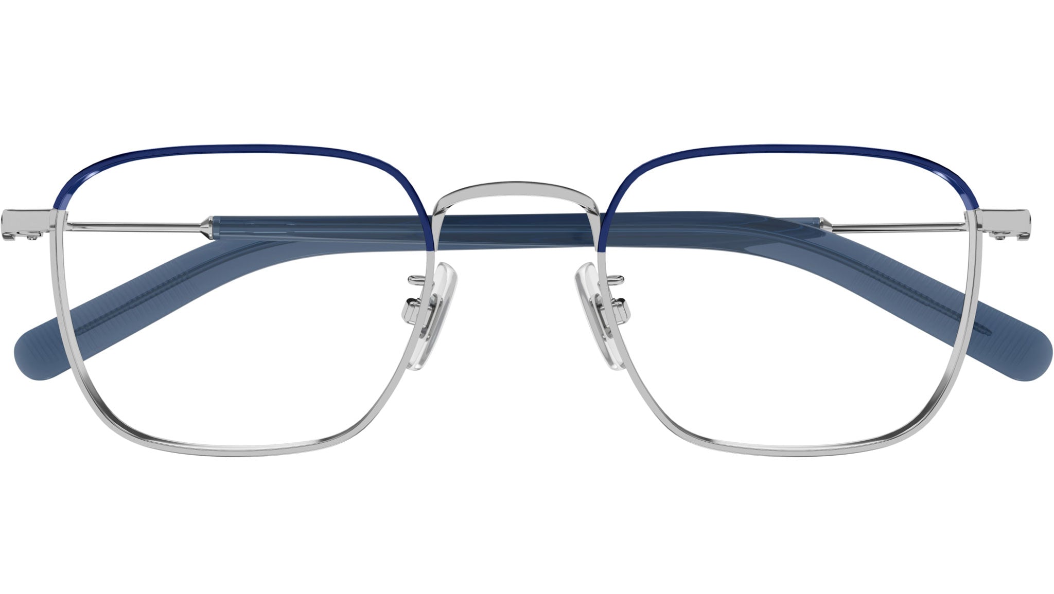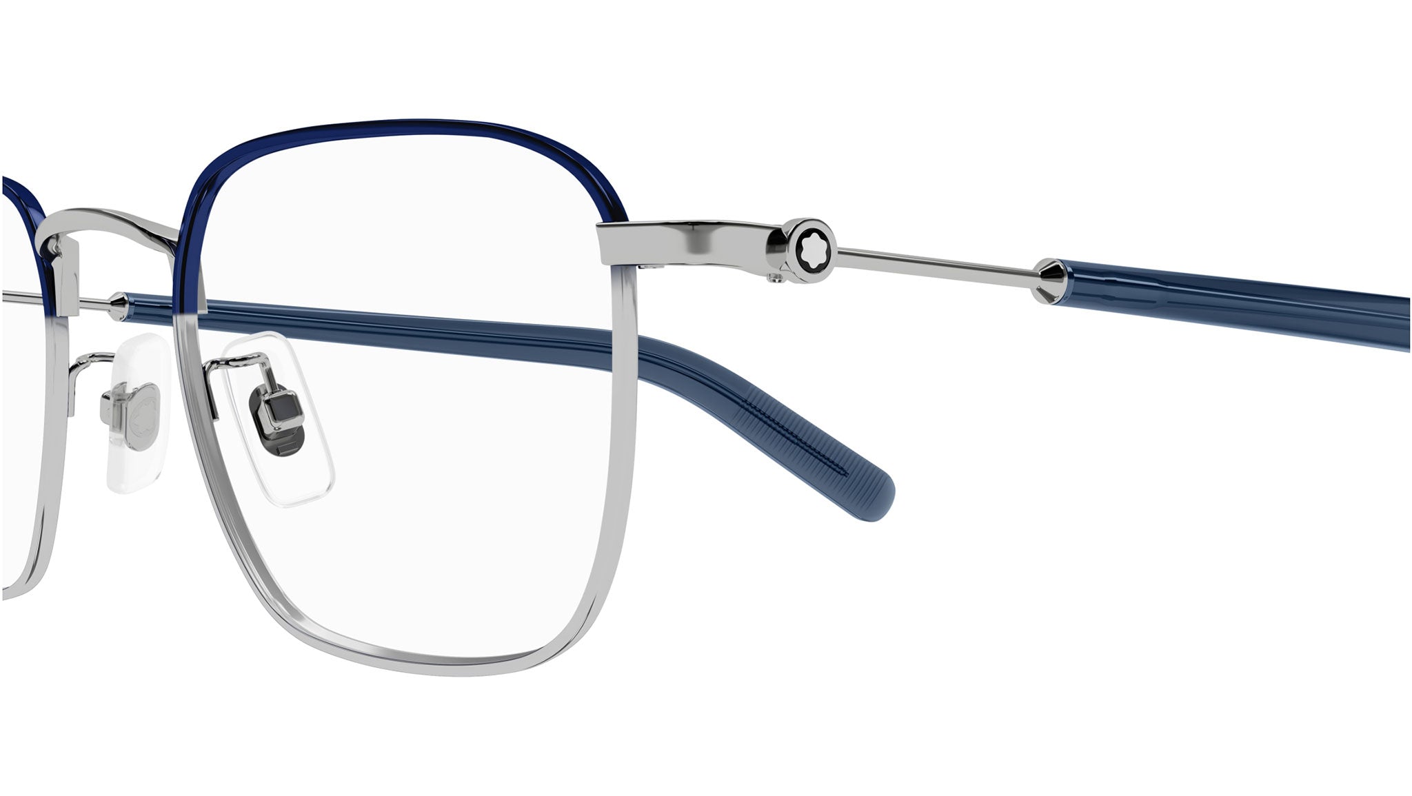Occhiali da vista Montblanc MB0389O 009 uomo con montatura rettangolare in metallo argento lucido / blu vernice trasparente lucido e lenti demo. Linea: Snowcap. Codice modello: MB0389O. Codice colore: 009. Made in Japan. Rivenditore autorizzato Montblanc online. Gli occhiali vengono consegnati con custodia e accessori originali e sono coperti dalla garanzia ufficiale di 12 mesi del produttore.