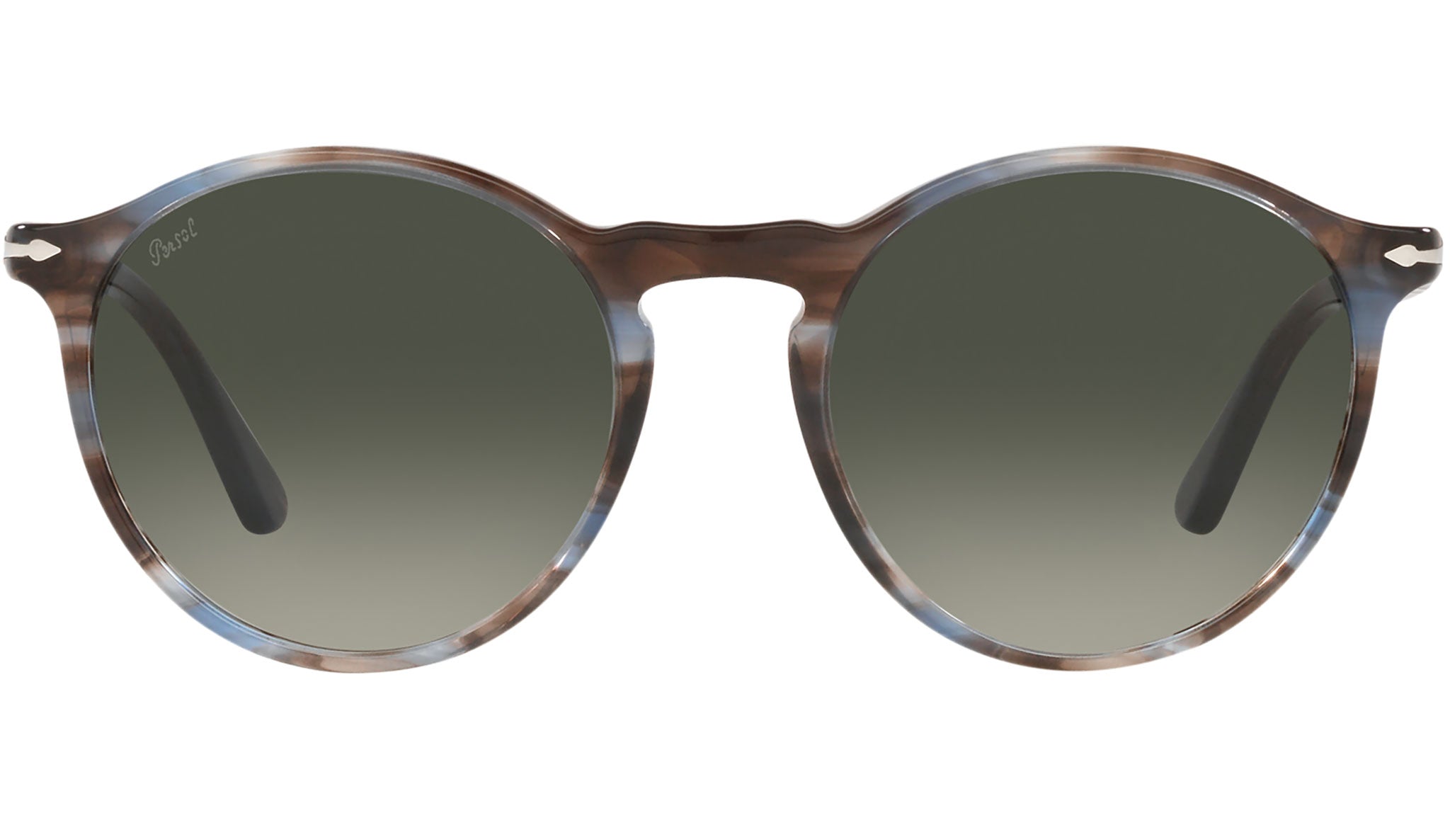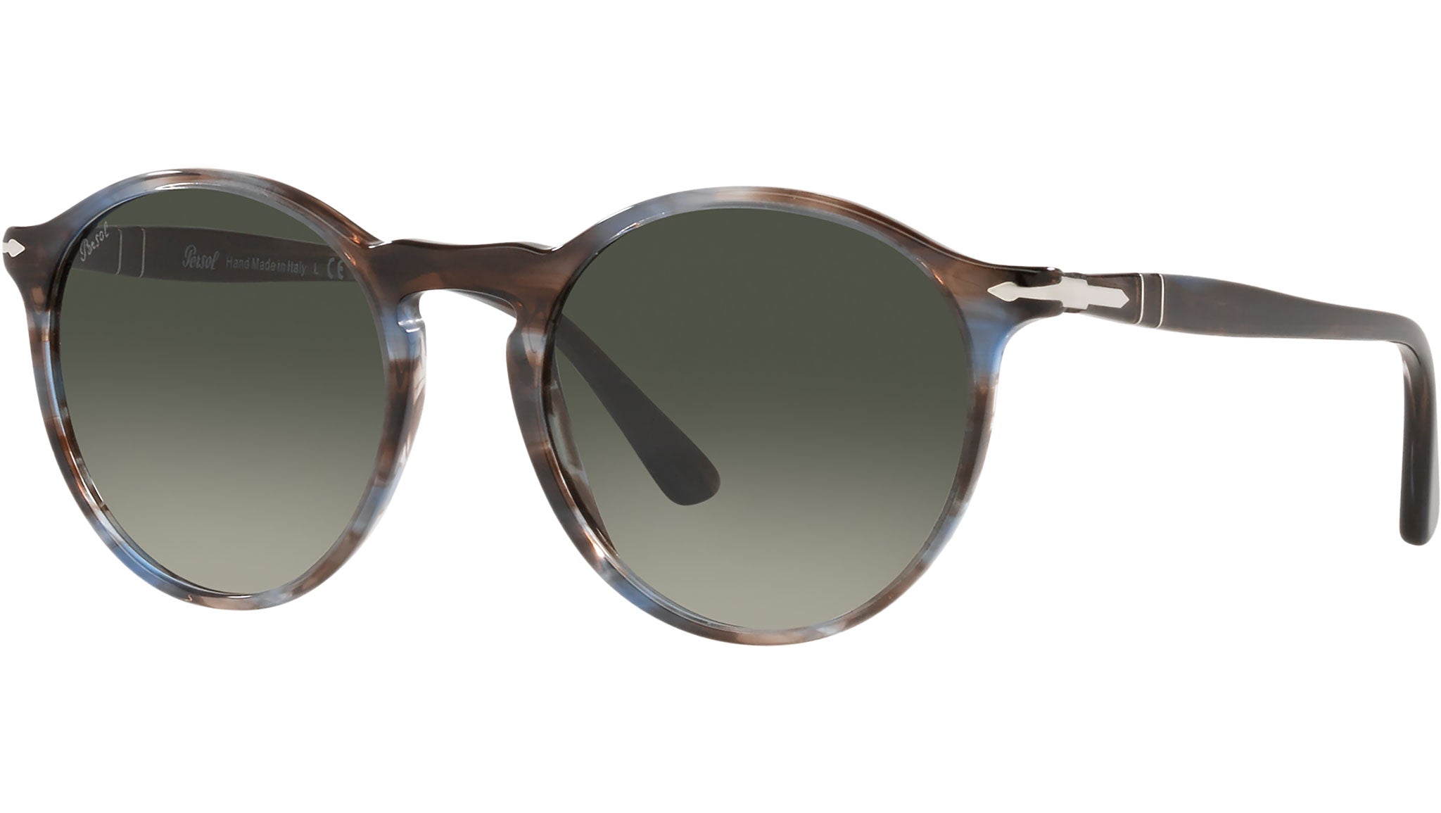 Occhiali da sole Persol modello PO3285S codice colore 115571 con montatura color blu striato full rim acetato e lenti in vetro color grigio.