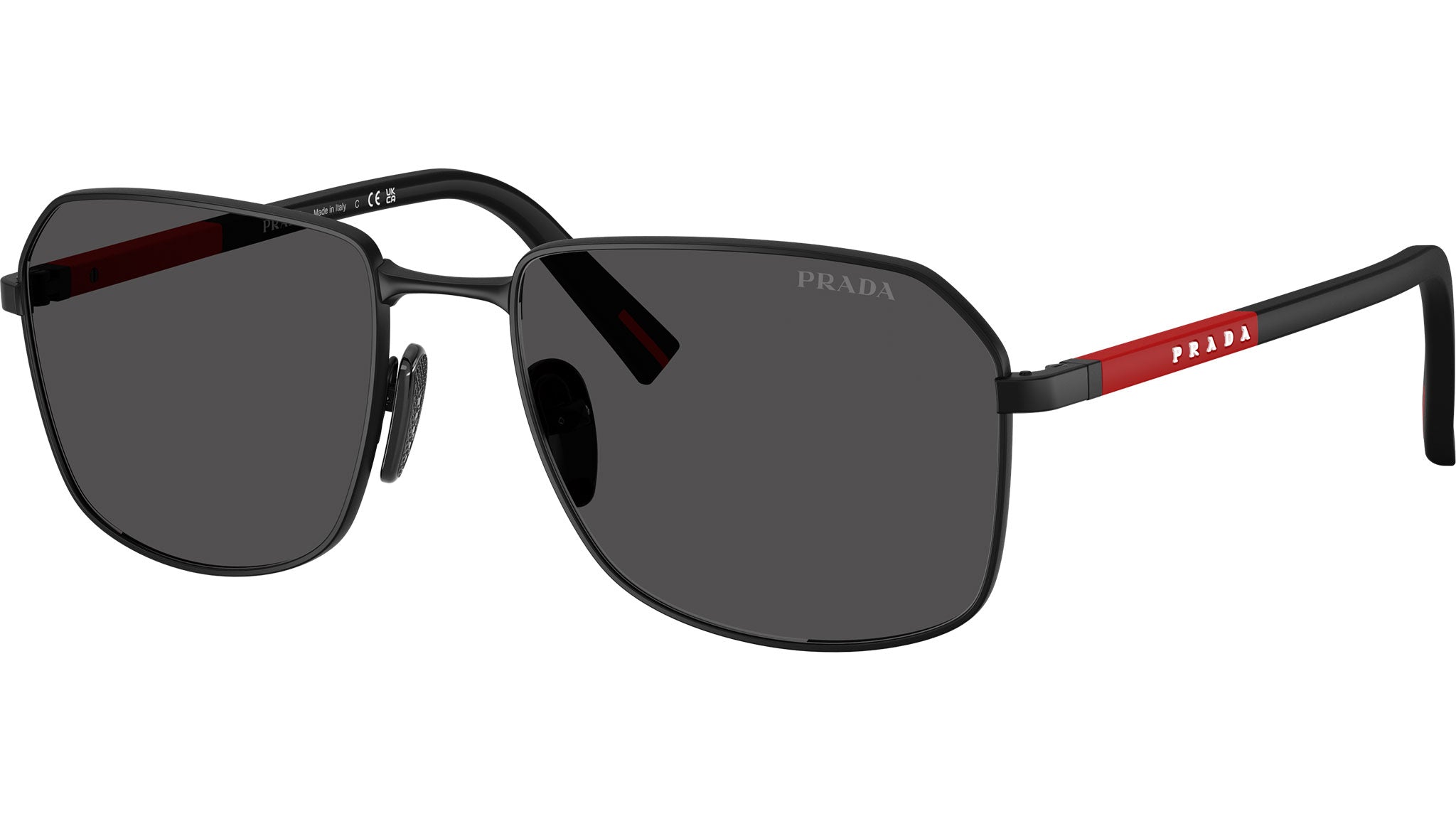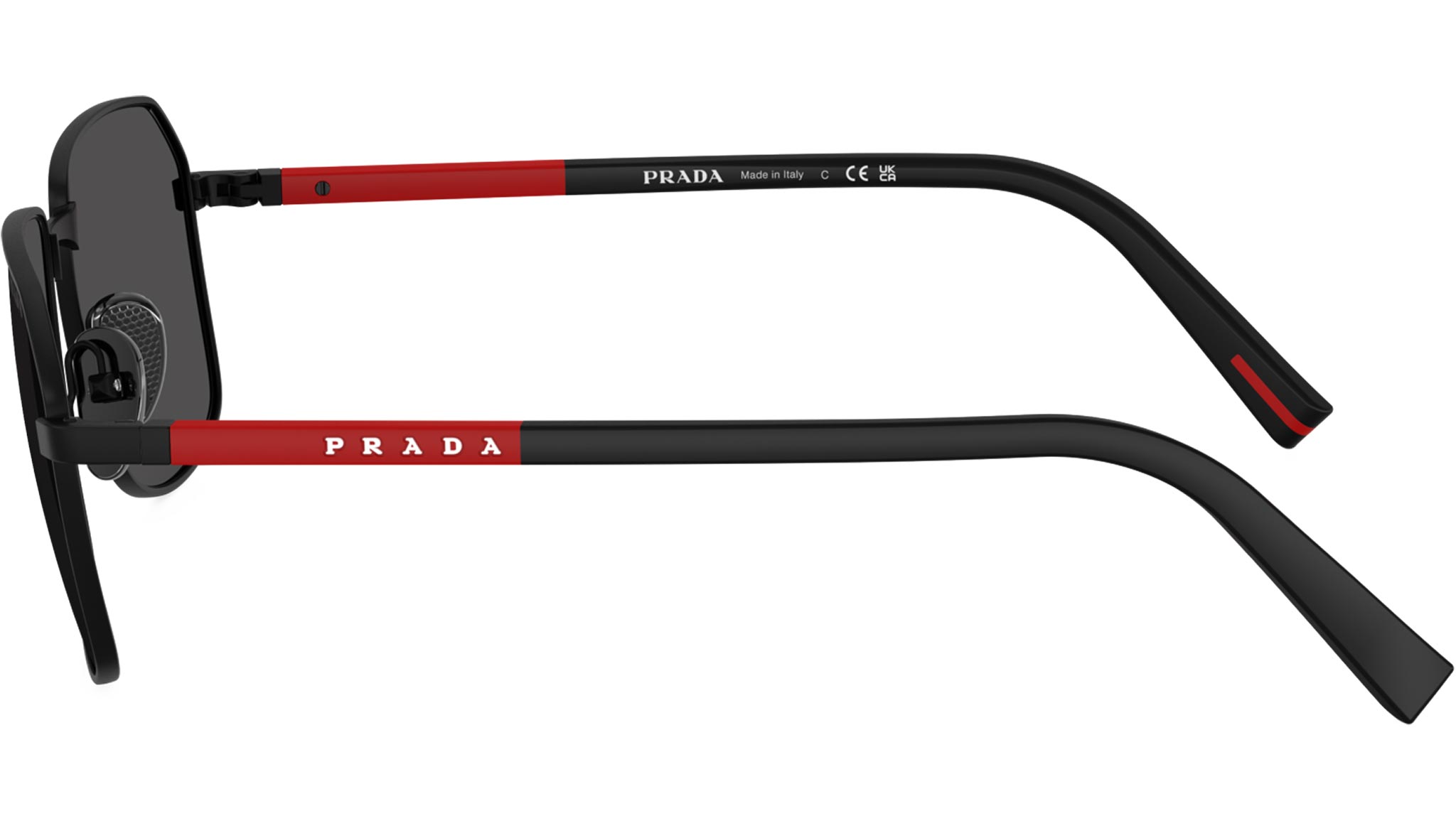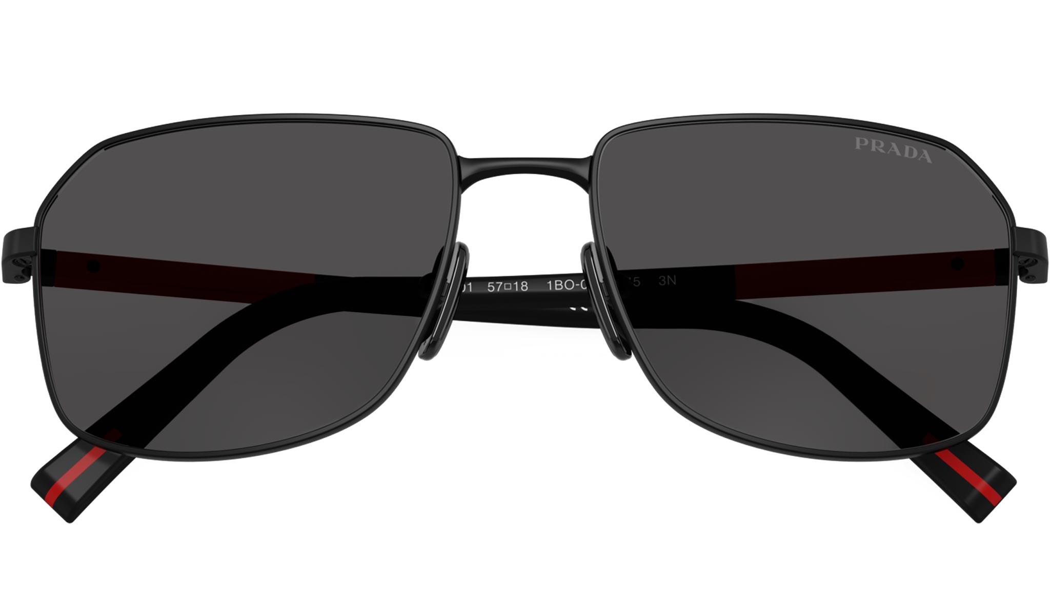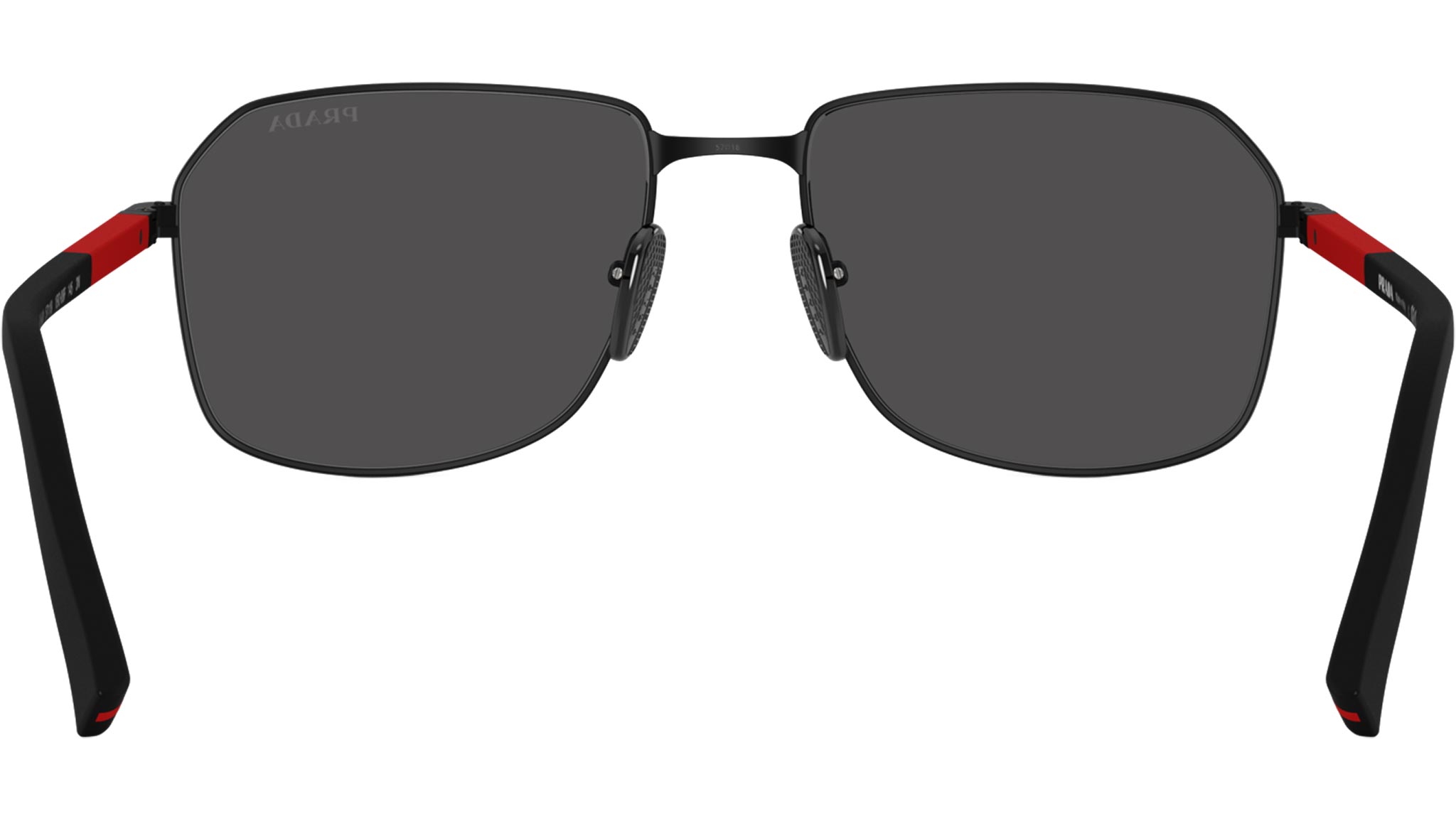 Occhiali da sole Prada Linea Rossa PS A51S 1BO06F uomo con montatura rettangolare in metallo nero opaco e lenti in poliammide color grigio scuro. Naselli regolabili. Linea: Lifestyle. Codice modello: PSA51S. Codice colore: 1BO06F. Made in Italy. Rivenditore autorizzato Prada Sport online. Gli occhiali vengono consegnati con custodia e accessori originali e sono coperti dalla garanzia ufficiale di 12 mesi del produttore.
