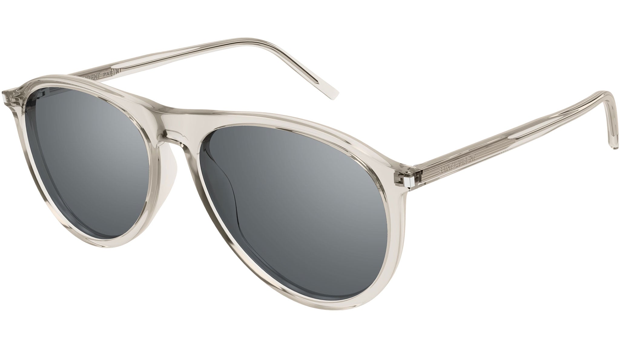 Occhiali da sole Saint Laurent SL 667 003 unisex con montatura aviatore in acetato riciclato crema trasparente lucido e lenti argento + grigio tinta unita. Linea: Classic. Codice modello: SL 667. Codice colore: 003. Made in Italy. Rivenditore autorizzato Saint Laurent online. Gli occhiali vengono consegnati con custodia e accessori originali e sono coperti dalla garanzia ufficiale di 12 mesi del produttore.
