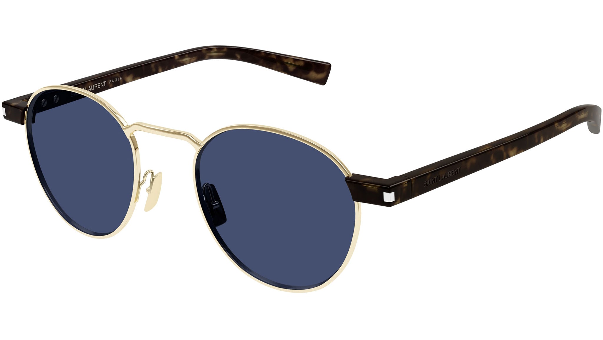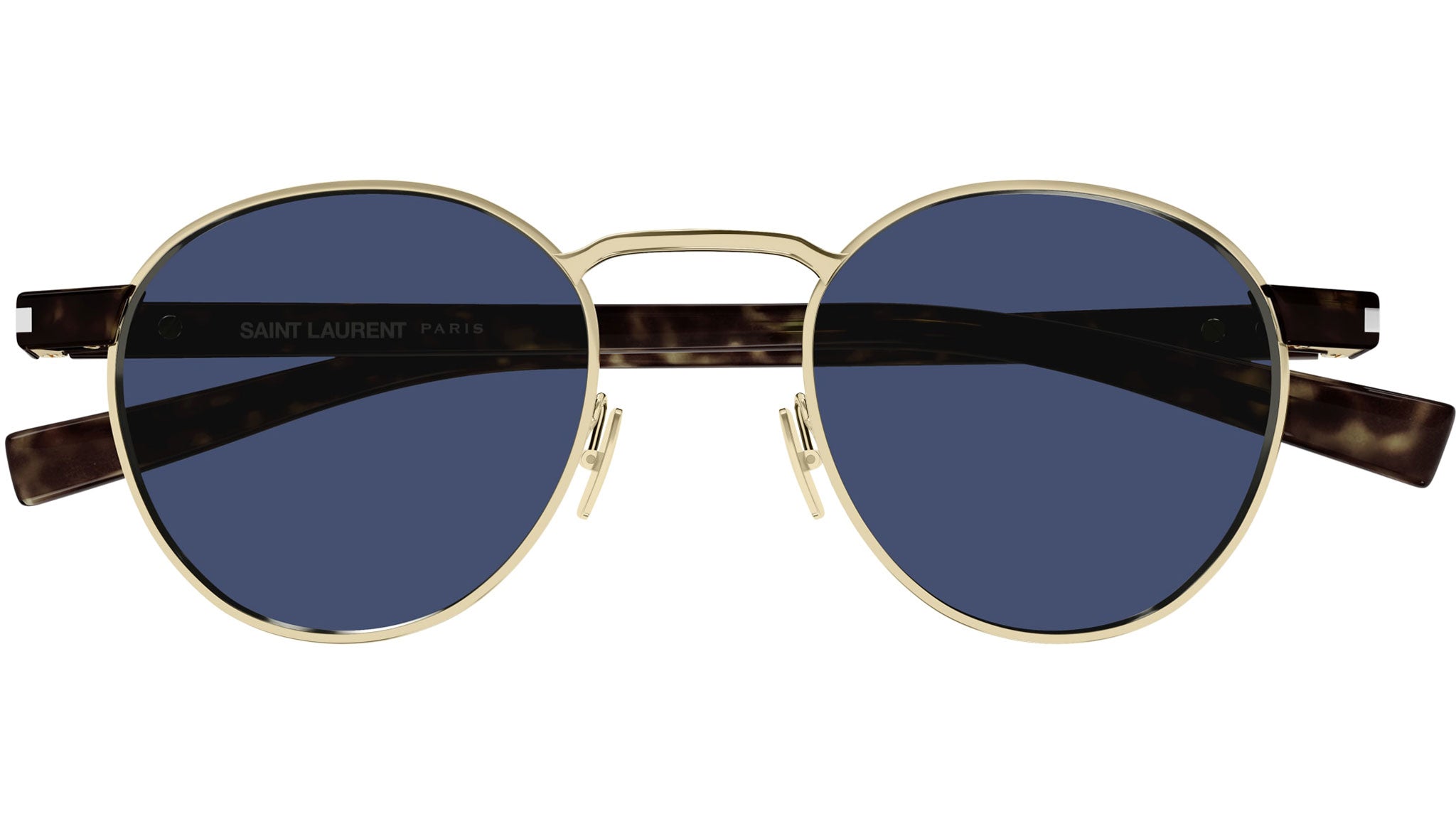 Occhiali da sole Saint Laurent SL 707 004 uomo con montatura pantos in metallo oro chiaro lucido e lenti blu tinta unita. Linea: Corner Angle. Codice modello: SL 707. Codice colore: 004. Made in Japan. Rivenditore autorizzato Saint Laurent online. Gli occhiali vengono consegnati con custodia e accessori originali e sono coperti dalla garanzia ufficiale di 12 mesi del produttore.