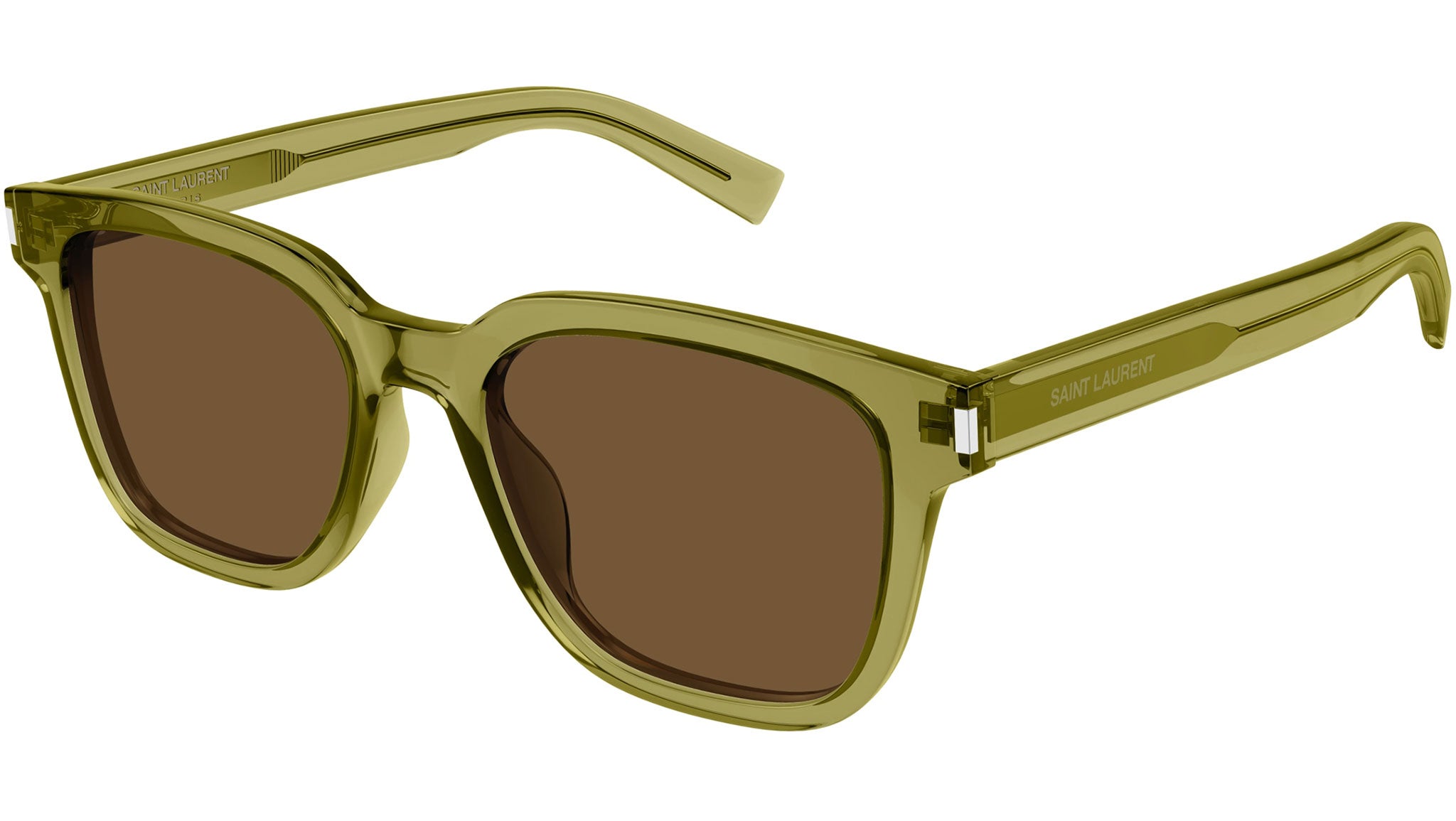 Occhiali da sole Saint Laurent SL 711 005 uomo con montatura rettangolare in acetato riciclato verde acido trasparente e lenti marrone tinta unita. Linea: Corner Angle. Codice modello: SL 711. Codice colore: 005. Made in Japan. Rivenditore autorizzato Saint Laurent online. Gli occhiali vengono consegnati con custodia e accessori originali e sono coperti dalla garanzia ufficiale di 12 mesi del produttore.