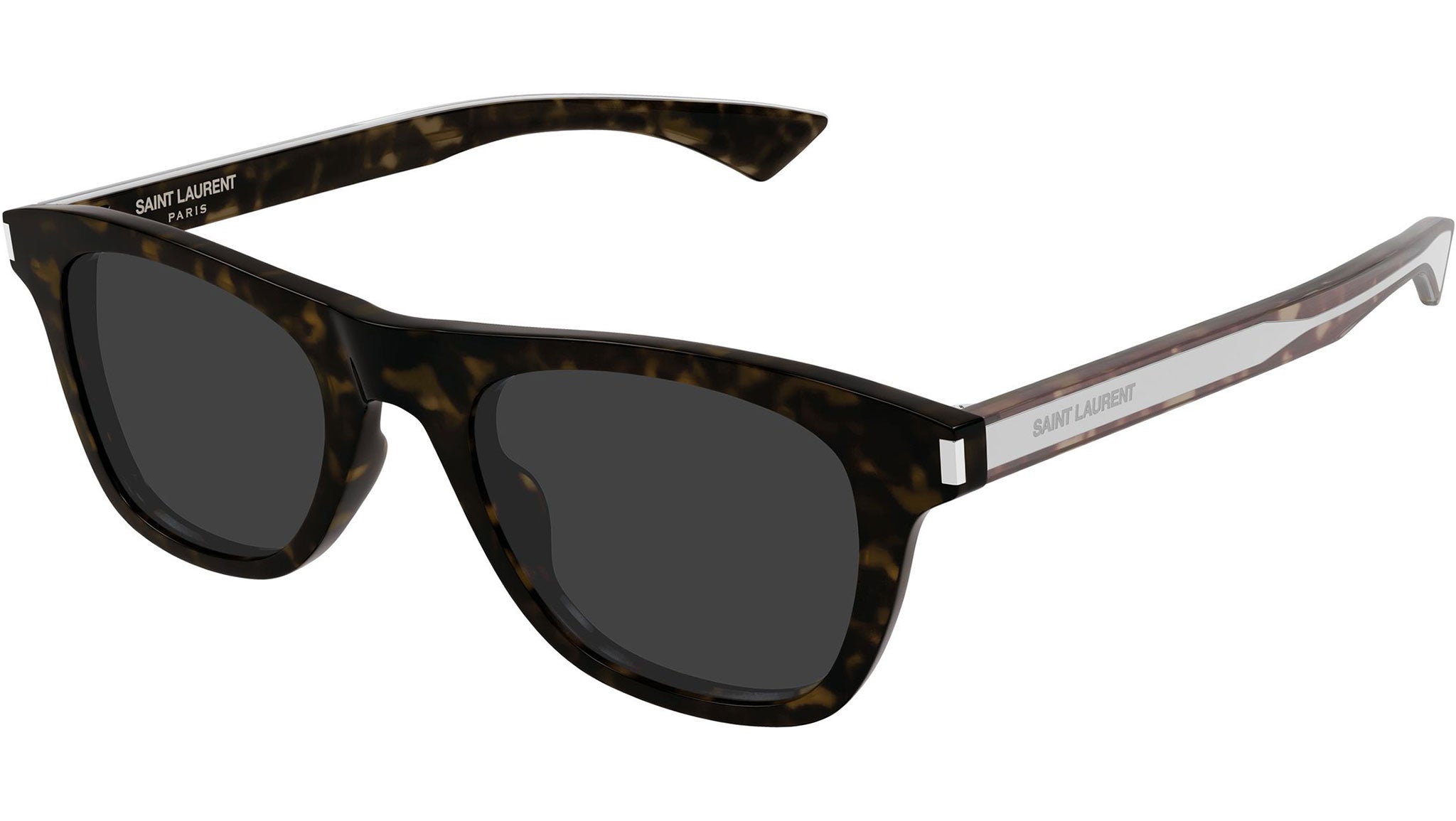 Occhiali da sole Saint Laurent SL 879 002 uomo con montatura rettangolare in acetato riciclato avana scuro lucido e lenti grigio tinta unita. Linea: Corner Angle. Codice modello: SL 879. Codice colore: 002. Made in Japan. Rivenditore autorizzato Saint Laurent online. Gli occhiali vengono consegnati con custodia e accessori originali e sono coperti dalla garanzia ufficiale di 12 mesi del produttore.