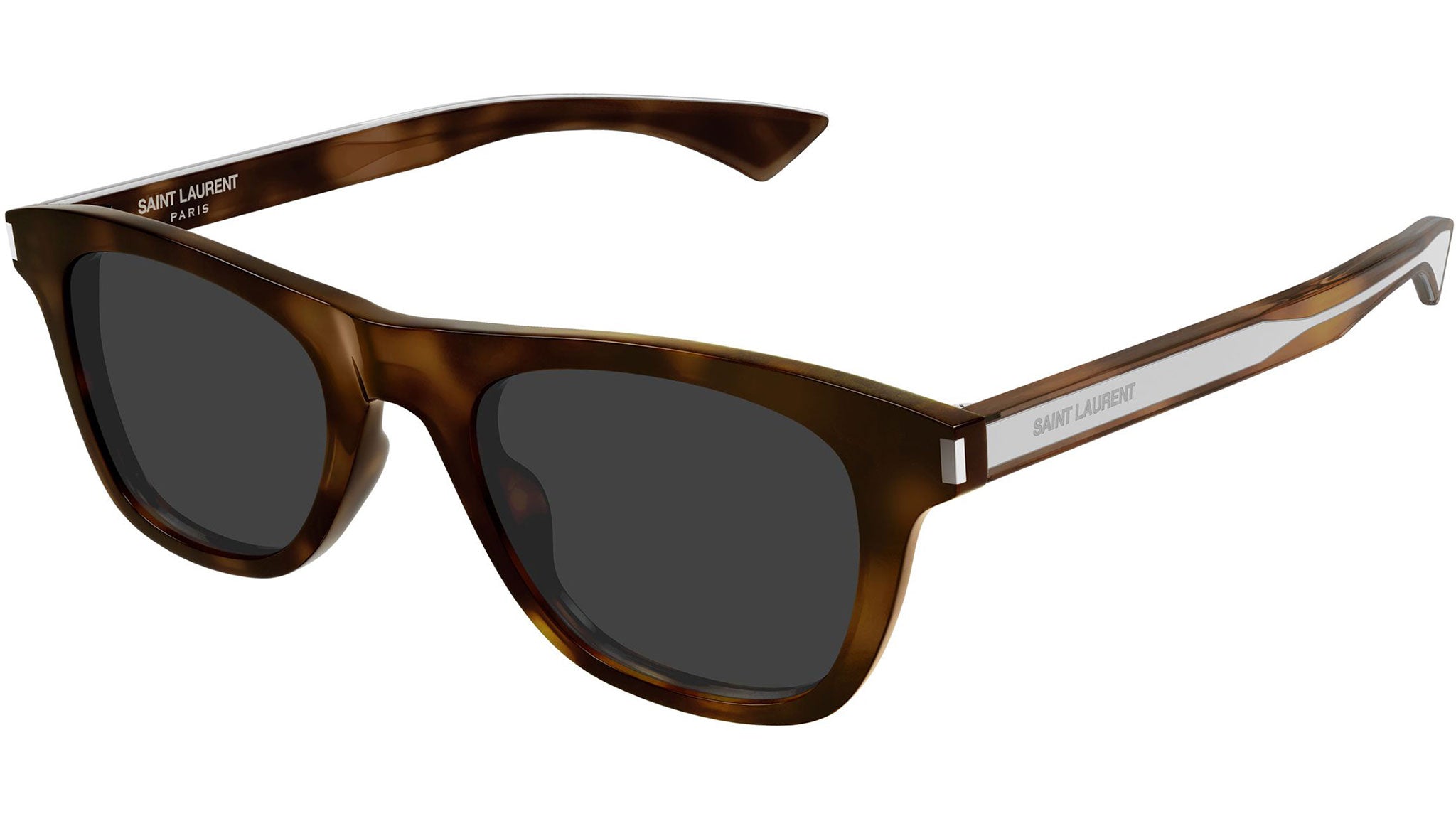 Occhiali da sole Saint Laurent SL 879 003 uomo con montatura rettangolare in acetato riciclato avana medio lucido e lenti grigio tinta unita. Linea: Corner Angle. Codice modello: SL 879. Codice colore: 003. Made in Japan. Rivenditore autorizzato Saint Laurent online. Gli occhiali vengono consegnati con custodia e accessori originali e sono coperti dalla garanzia ufficiale di 12 mesi del produttore.