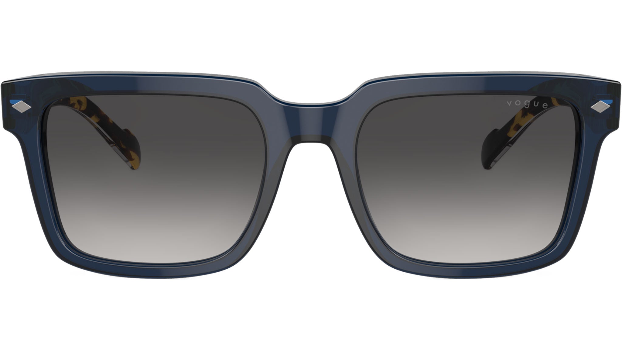 Occhiali da sole Vogue uomo modello VO5573S 31438G con montatura d-frame in acetato blu trasparente e lenti base 4 in CR-39 grigio sfumato nero. Vestibilità a ponte alto. Linea: Man. Codice Brand: 0VO5573S. Codice colore: 31438G. Rivenditore autorizzato online Vogue Eyewear. Ogni prodotto Vogue viene consegnato con astuccio originale e accessori ed è coperto da garanzia del produttore di 12 mesi.