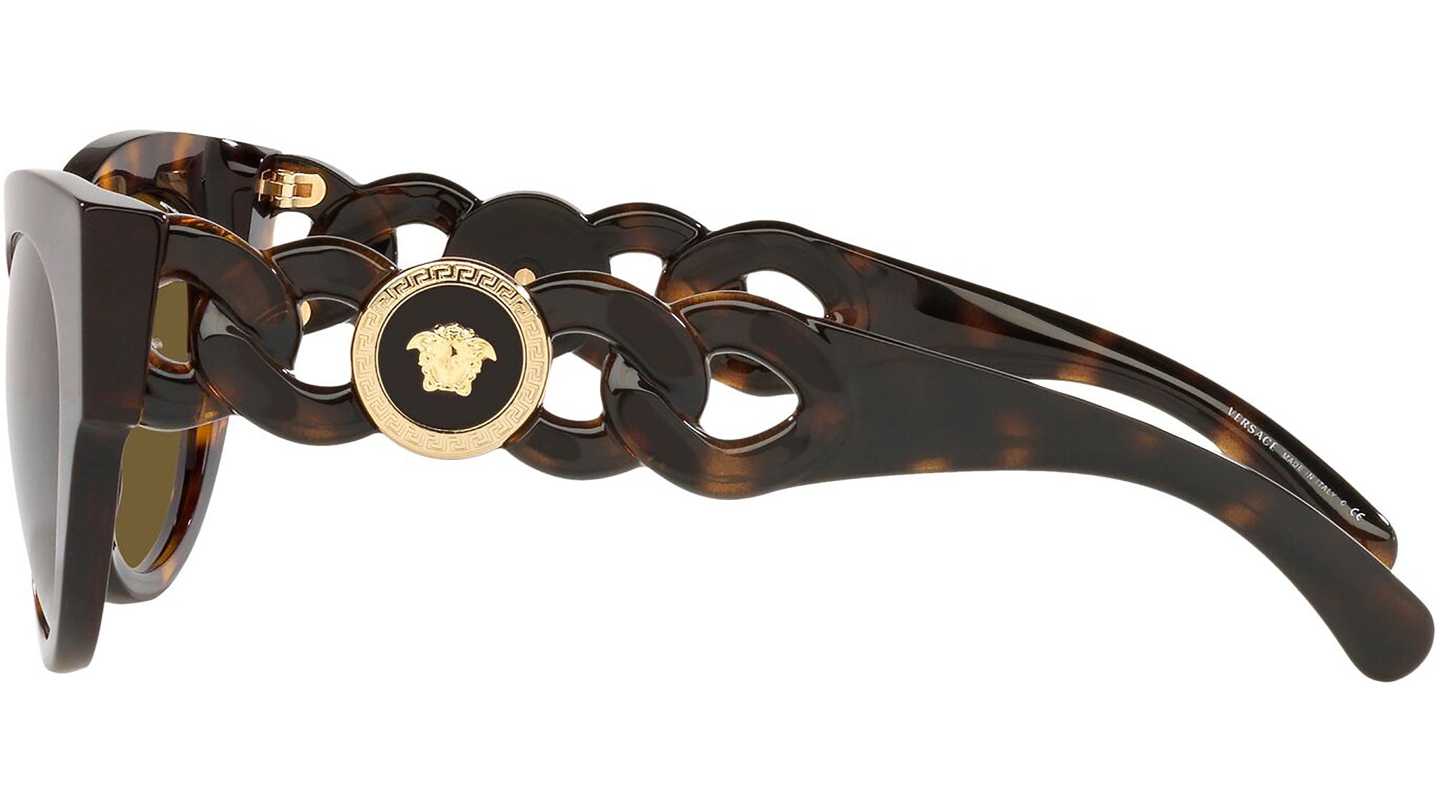 Occhiali da sole Versace modello VE4408 codice colore 108/73 avana con lenti color marrone scuro. Dedicata a chi desidera uno stile contemporaneo, sexy, sofisticato e dalla forte personalità, Versace è una delle case di alta moda e lusso più iconiche e famose al mondo. La collezione da sole combina innovazione tecnica e stile essenziale del brand, ed è fortemente caratterizzata dagli elementi decorativi che da sempre contraddistinguono la Maison.