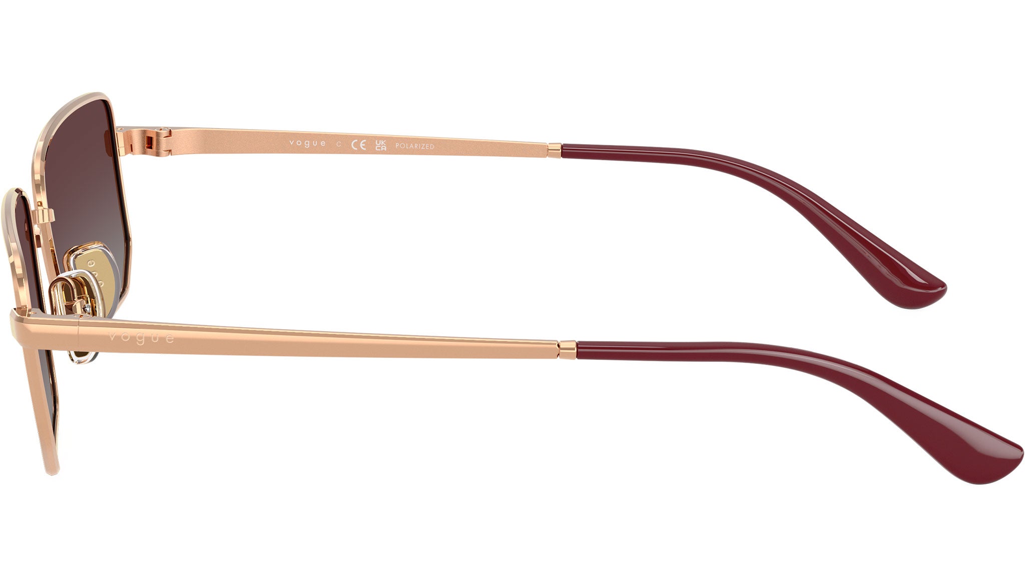Occhiali da sole Vogue donna modello VO4352S 515262 con montatura geometrica in metallo oro rosa e lenti base 2 in policarbonato grigio sfumato viola polarizzato. Naselli regolabili. Linea: In Vogue. Codice Brand: 0VO4352S. Codice colore: 515262. Rivenditore autorizzato online Vogue Eyewear. Ogni prodotto Vogue viene consegnato con astuccio originale e accessori ed è coperto da garanzia del produttore di 12 mesi.