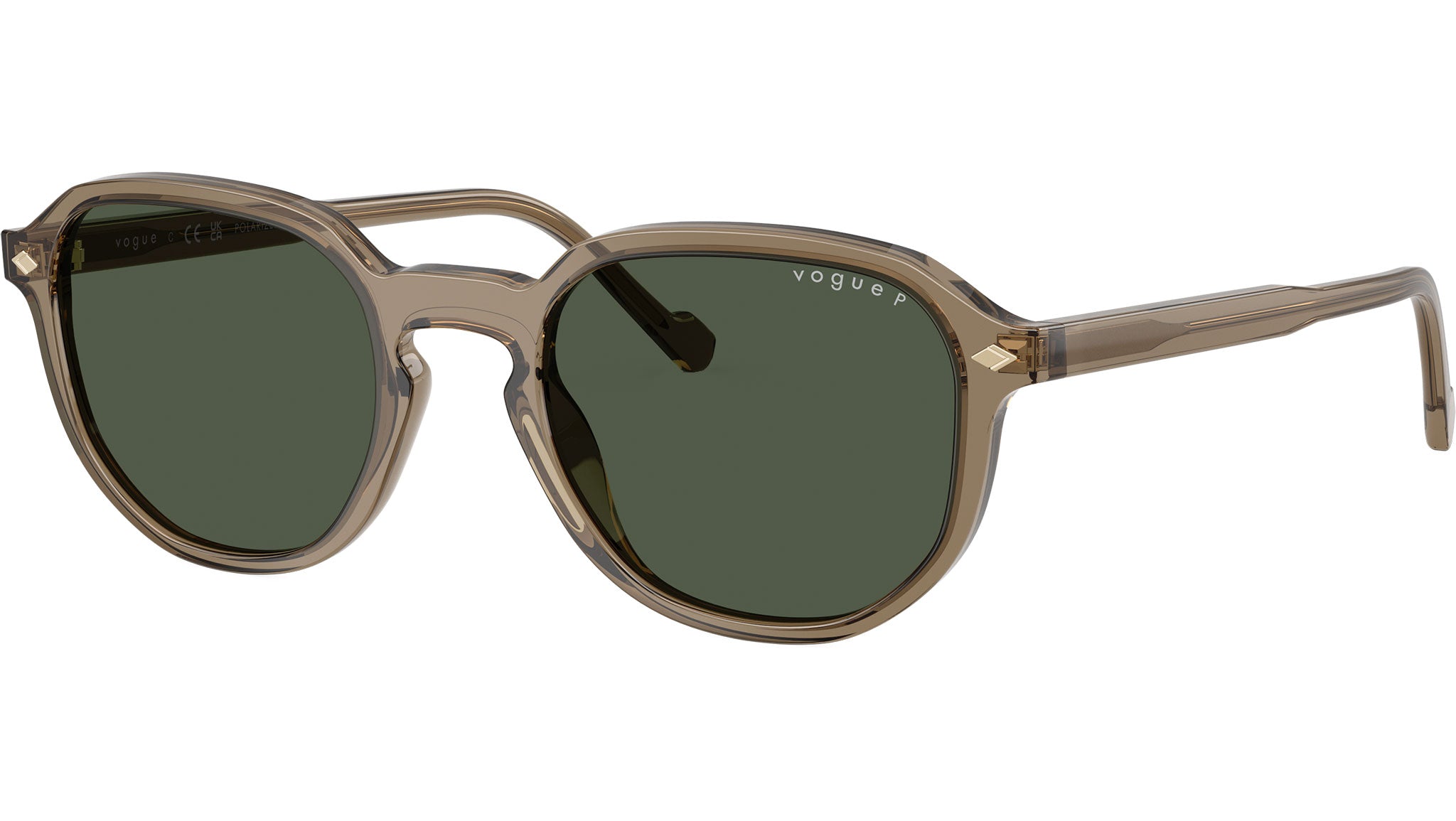 Occhiali da sole Vogue uomo modello VO5707S 32939A con montatura geometrica in acetato marrone trasparente cuore e lenti base 4 in CR-39 verde scuro polarizzato. Vestibilità a ponte alto. Linea: Man. Codice Brand: 0VO5707S. Codice colore: 32939A. Rivenditore autorizzato online Vogue Eyewear. Ogni prodotto Vogue viene consegnato con astuccio originale e accessori ed è coperto da garanzia del produttore di 12 mesi.