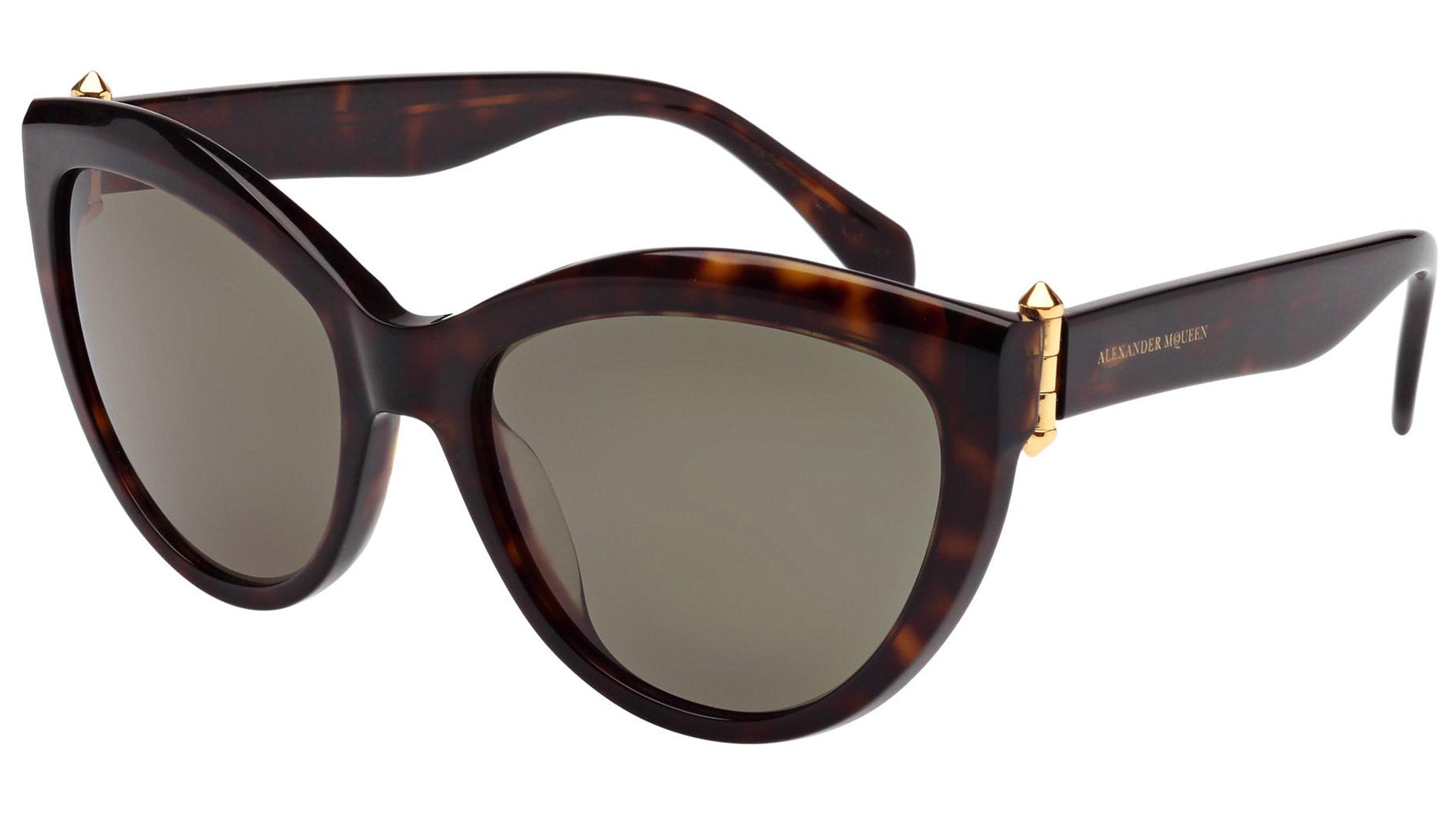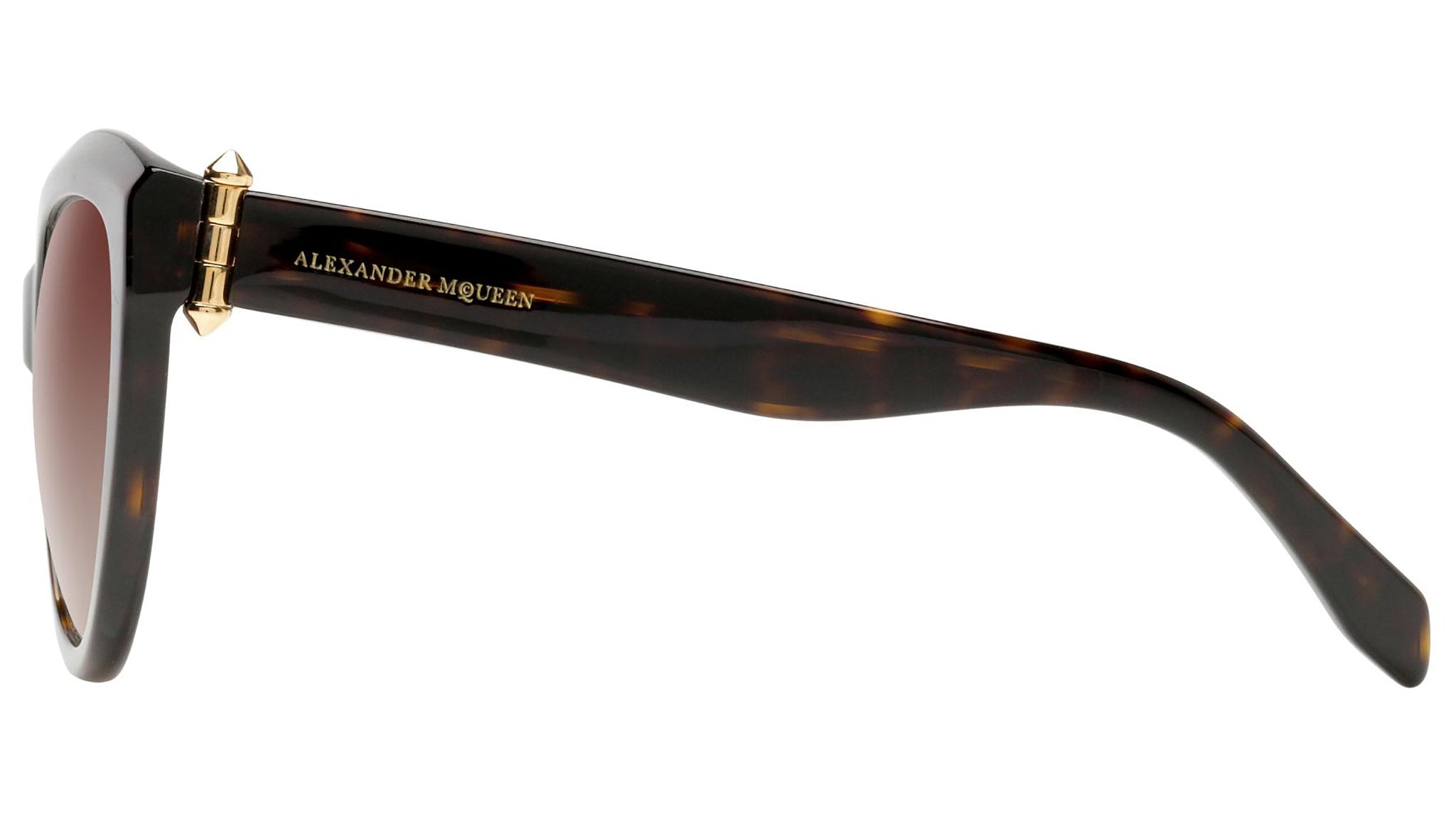 AM0003S 002 sunglasses by Alexander McQueen with havana frame and gradient brown lenses. Alexander McQueen Eyewear eyewear styles represent a juxtaposition between contrasting elements: femininity and masculinity, fragility and strength, tradition and modernity. An innovative and uncompromising identity of the fashion house.