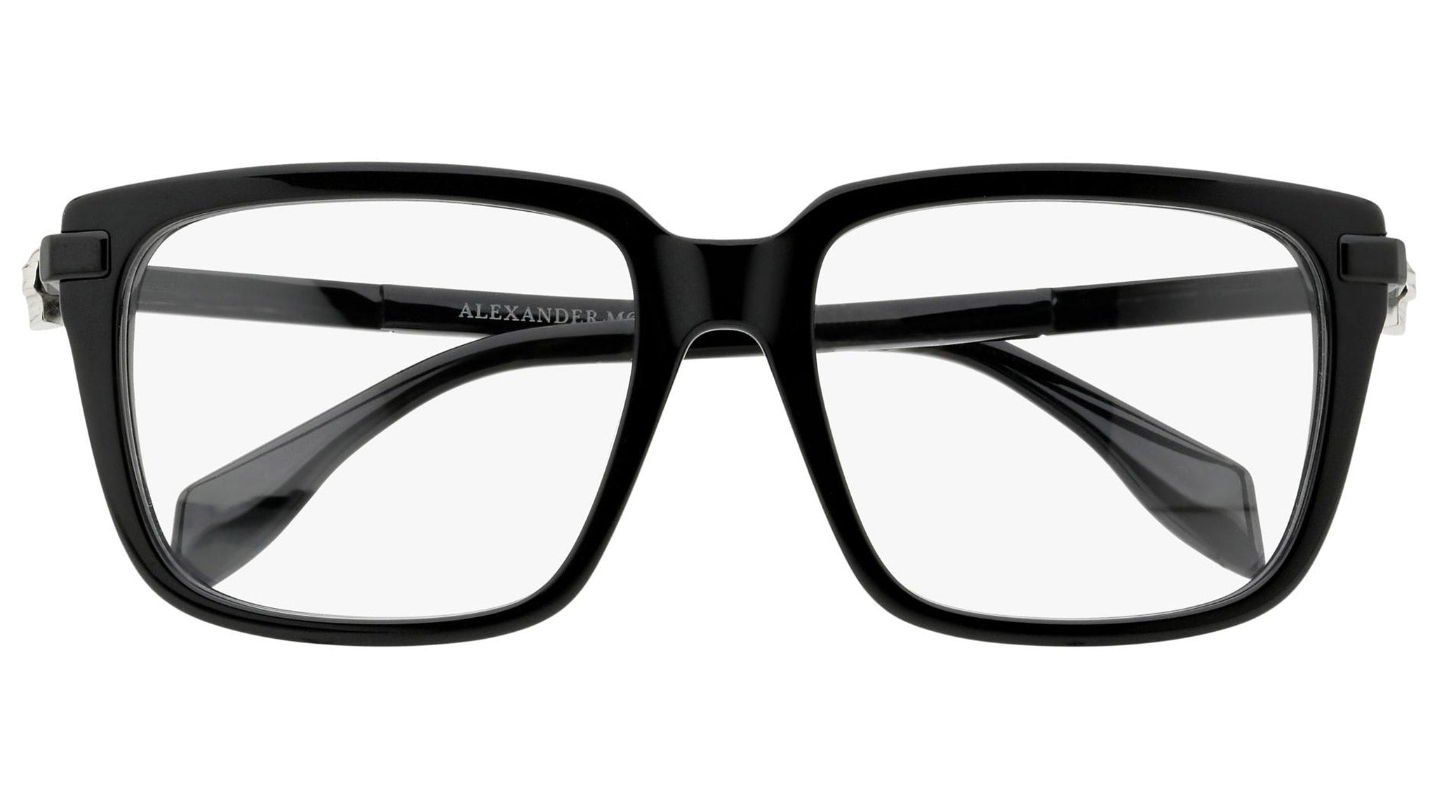 Alexander McQueen optical glasses model AM0022O 003 featuring shiny black frame and black colour temple. Synonymous with fearless fashion, Alexander McQueen Eyewear eyewear styles represent a juxtaposition between contrasting elements, as his runway styles are unique and inspiring.