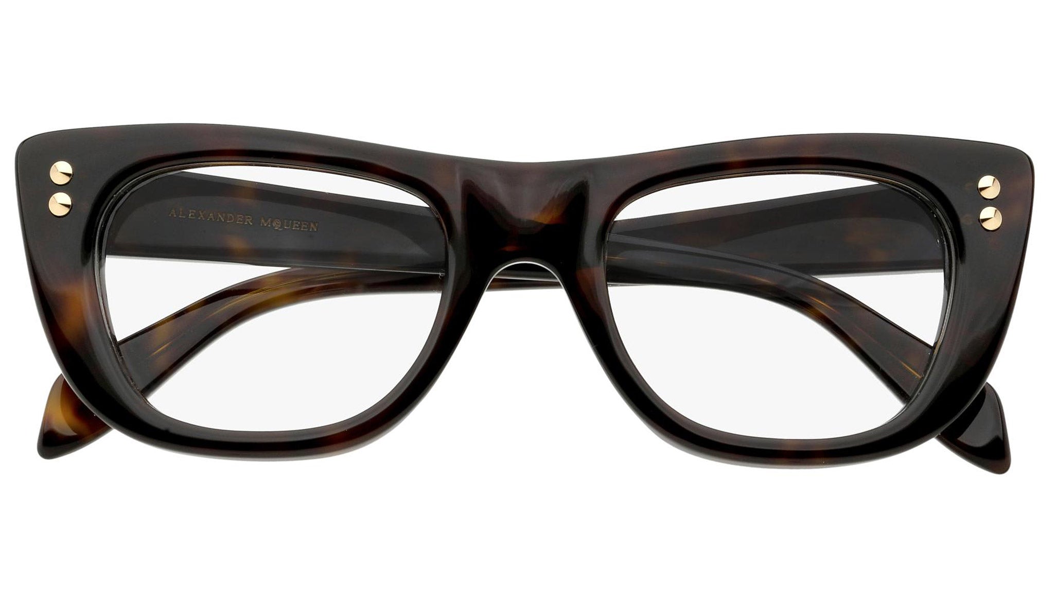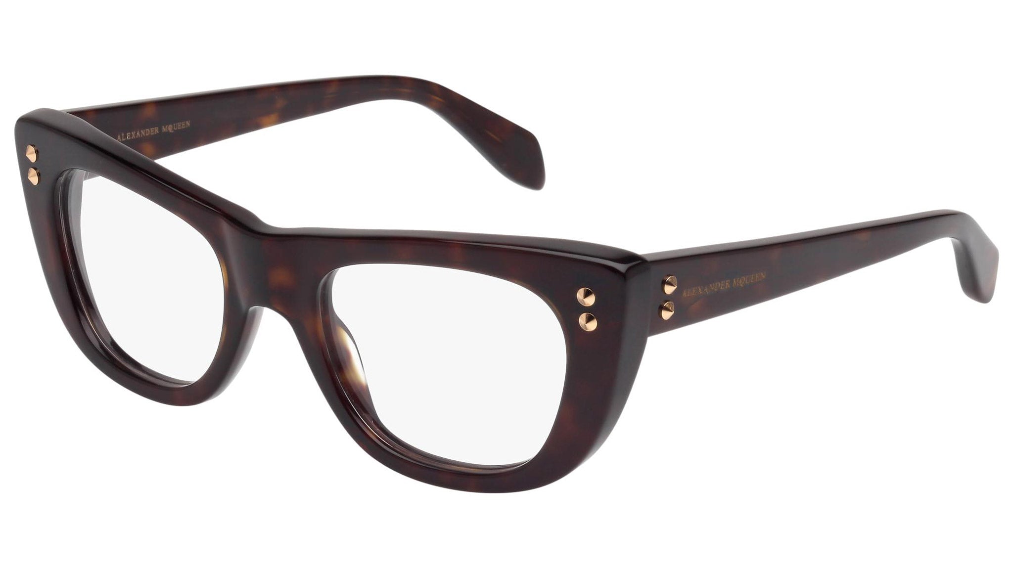 Alexander McQueen optical glasses model AM0034O 003 featuring shiny dark havana frame and havana colour temple. Synonymous with fearless fashion, Alexander McQueen Eyewear eyewear styles represent a juxtaposition between contrasting elements, as his runway styles are unique and inspiring.