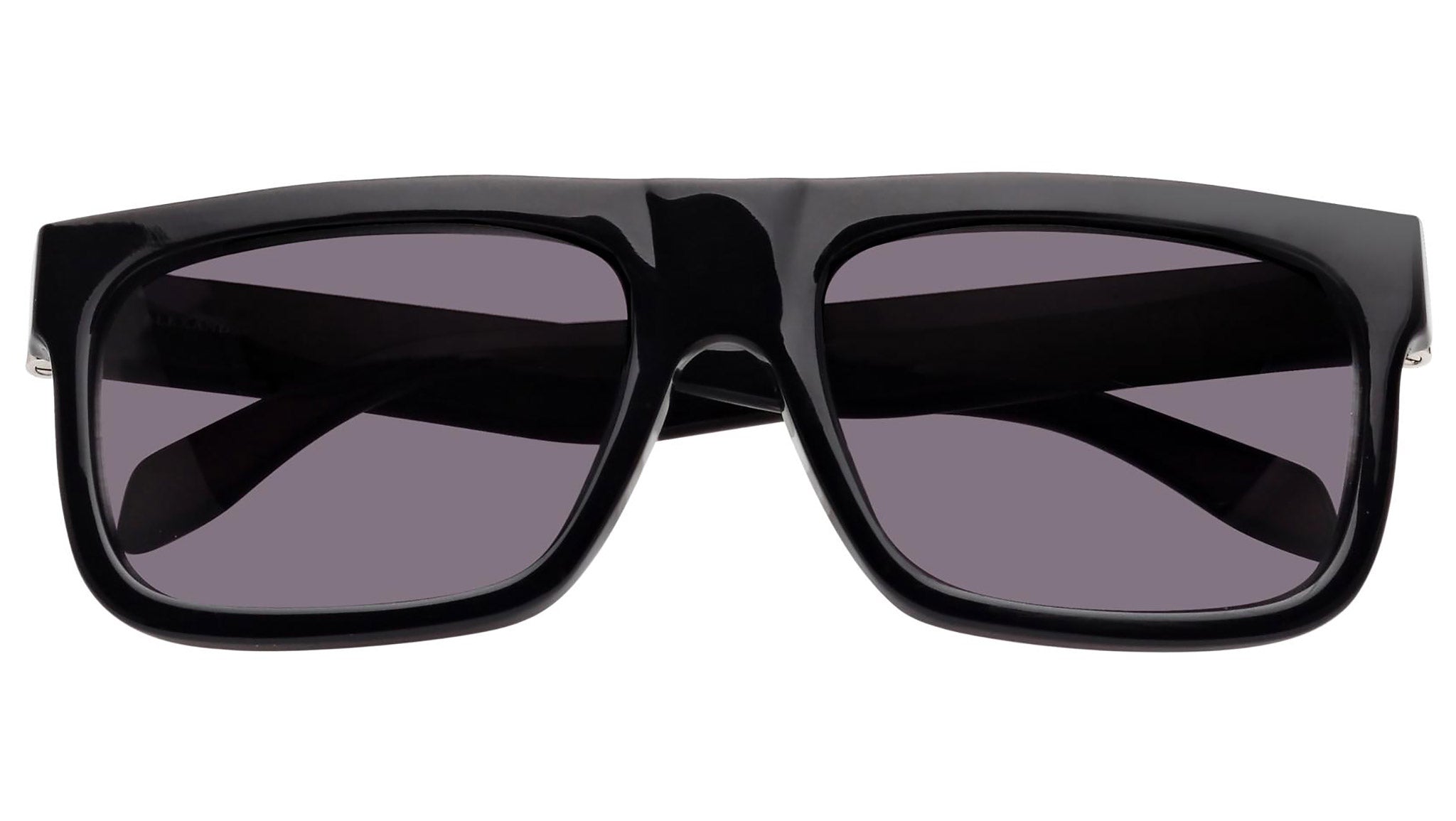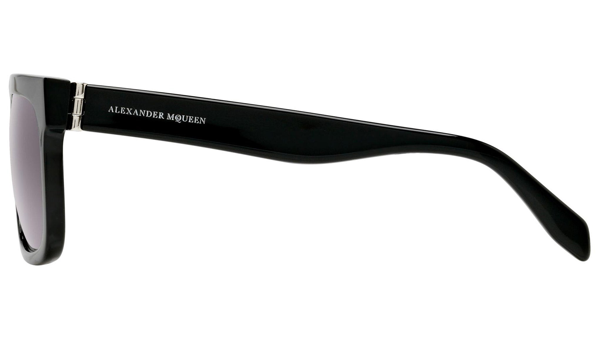 AM0037S 002 sunglasses by Alexander McQueen with shiny black frame and solid grey lenses. Alexander McQueen Eyewear eyewear styles represent a juxtaposition between contrasting elements: femininity and masculinity, fragility and strength, tradition and modernity. An innovative and uncompromising identity of the fashion house.