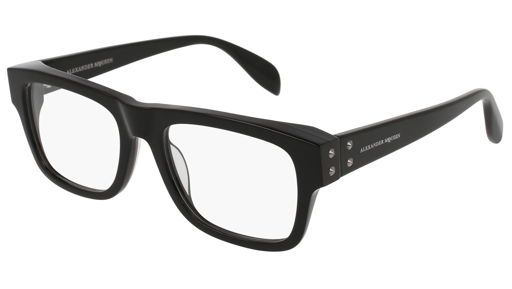 Alexander McQueen optical glasses model AM0070O 001 featuring shiny black frame and black colour temple. Synonymous with fearless fashion, Alexander McQueen Eyewear eyewear styles represent a juxtaposition between contrasting elements, as his runway styles are unique and inspiring.
