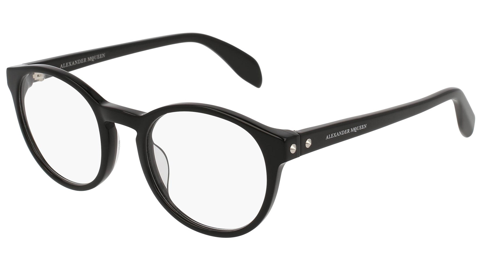 Alexander McQueen optical glasses model AM0075O 001 featuring shiny black frame and black colour temple. Synonymous with fearless fashion, Alexander McQueen Eyewear eyewear styles represent a juxtaposition between contrasting elements, as his runway styles are unique and inspiring.