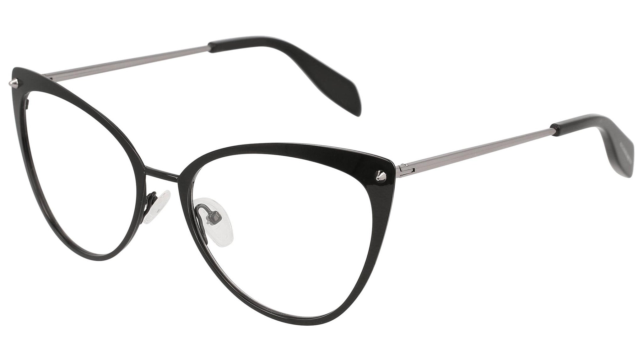 Alexander McQueen optical glasses model AM0140O 001 featuring shiny black frame and ruthenium colour temple. Synonymous with fearless fashion, Alexander McQueen Eyewear eyewear styles represent a juxtaposition between contrasting elements, as his runway styles are unique and inspiring.