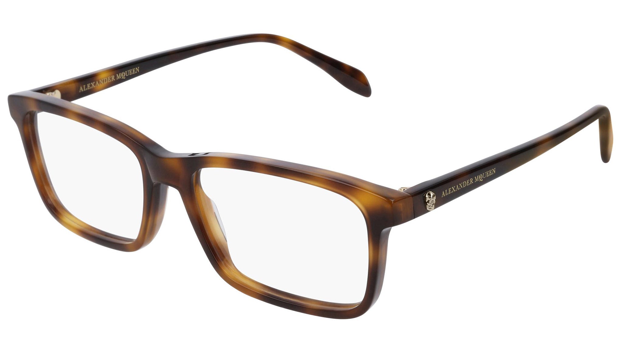 Alexander McQueen optical glasses model AM0162O 002 featuring shiny medium havana frame and havana colour temple. Synonymous with fearless fashion, Alexander McQueen Eyewear eyewear styles represent a juxtaposition between contrasting elements, as his runway styles are unique and inspiring.